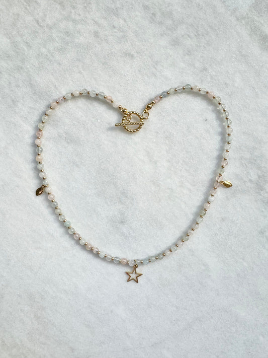 Dainty Morganite & Aquamarine Necklace / Star Charm