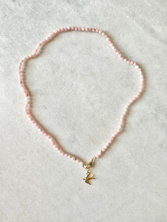 Pink Opal Hand Knotted Petal Necklace / Gold Vermeil Charm