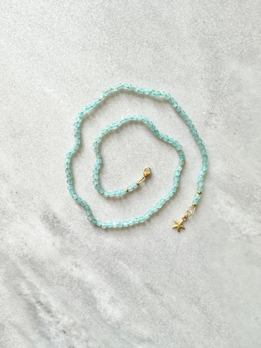 Amazonite Hand Knotted Ocean Breeze Necklace / Gold Vermeil Starfish Charm