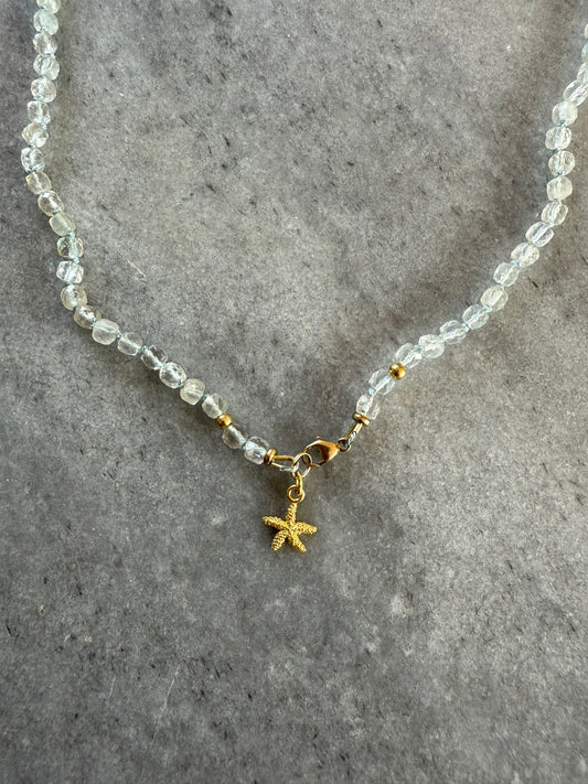 Blue Topaz Silk Knotted Necklace / Starfish Charm