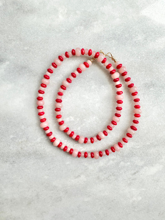 Make a statement with our new Rondelle edit – a bold collection of necklaces crafted with vibrant semi-precious gemstones. Featuring smooth rondelle-cut stones like Aventurine, Agate, Amazonite, and Jasper, each necklace brings colour, energy, and confidence to your everyday style. Designed to stand out yet easy to wear, these gemstone necklaces are perfect for layering or wearing solo as your signature piece.