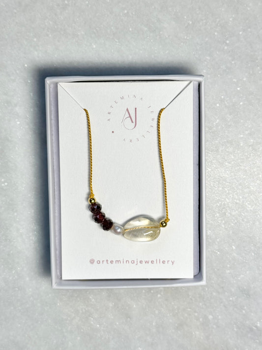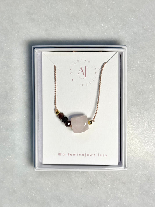 Garnet & Rose Quartz Pendant Necklace - January Birthstone