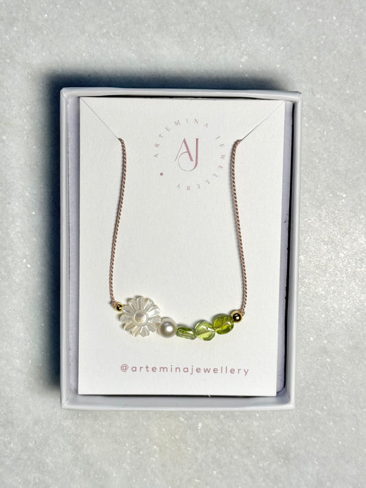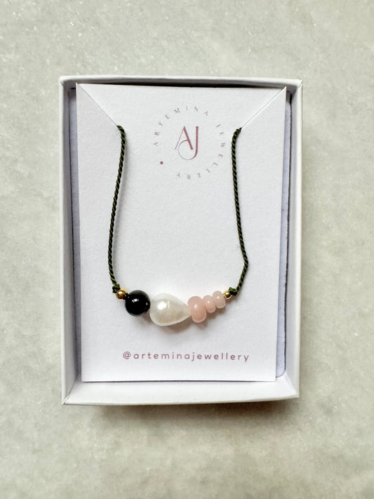 Pink Opal & Tourmaline Pendant Necklace - October Birthstone