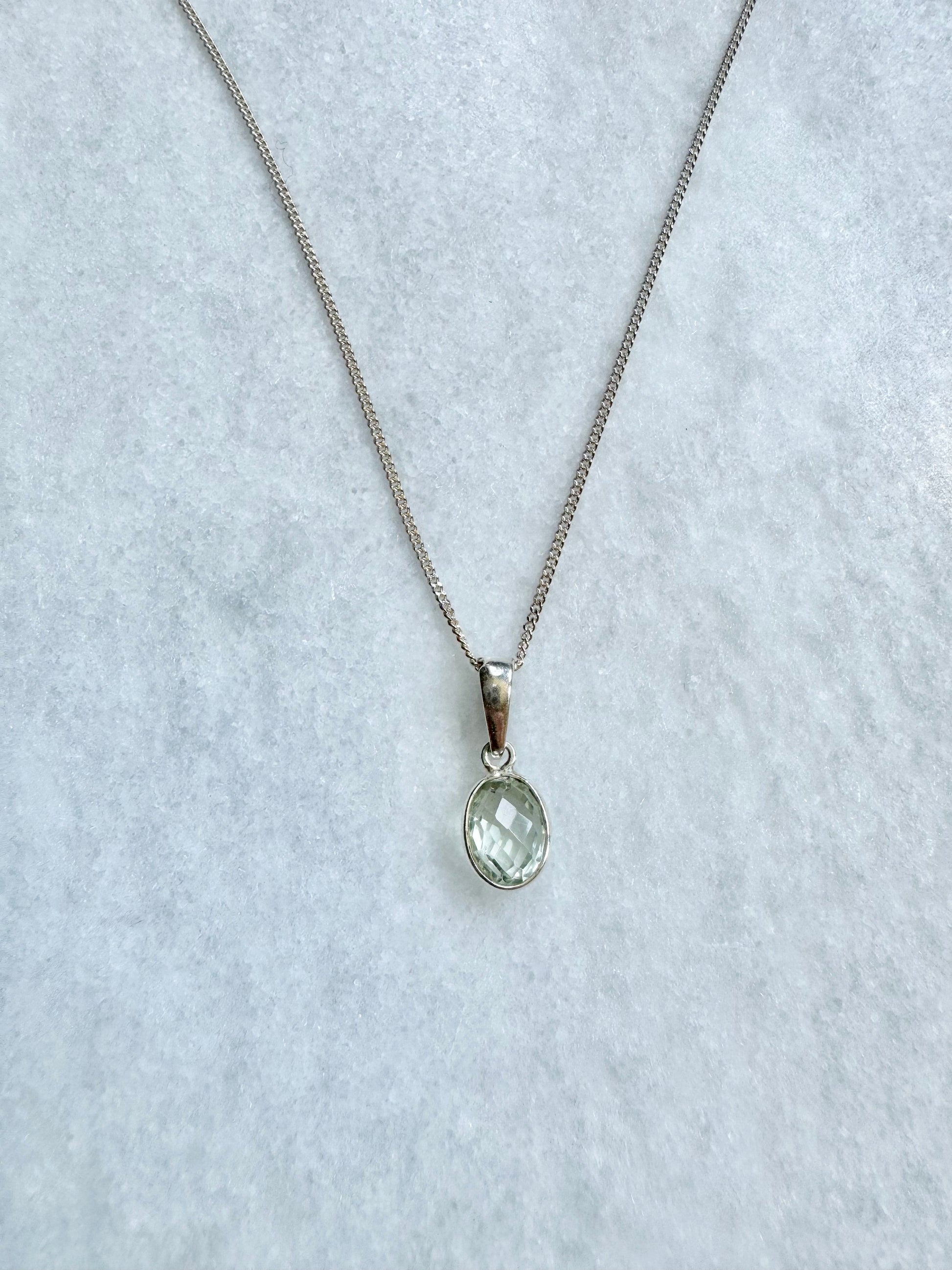 Petit pendentif ovale en améthyste verte sur une chaîne gourmette en argent sterling