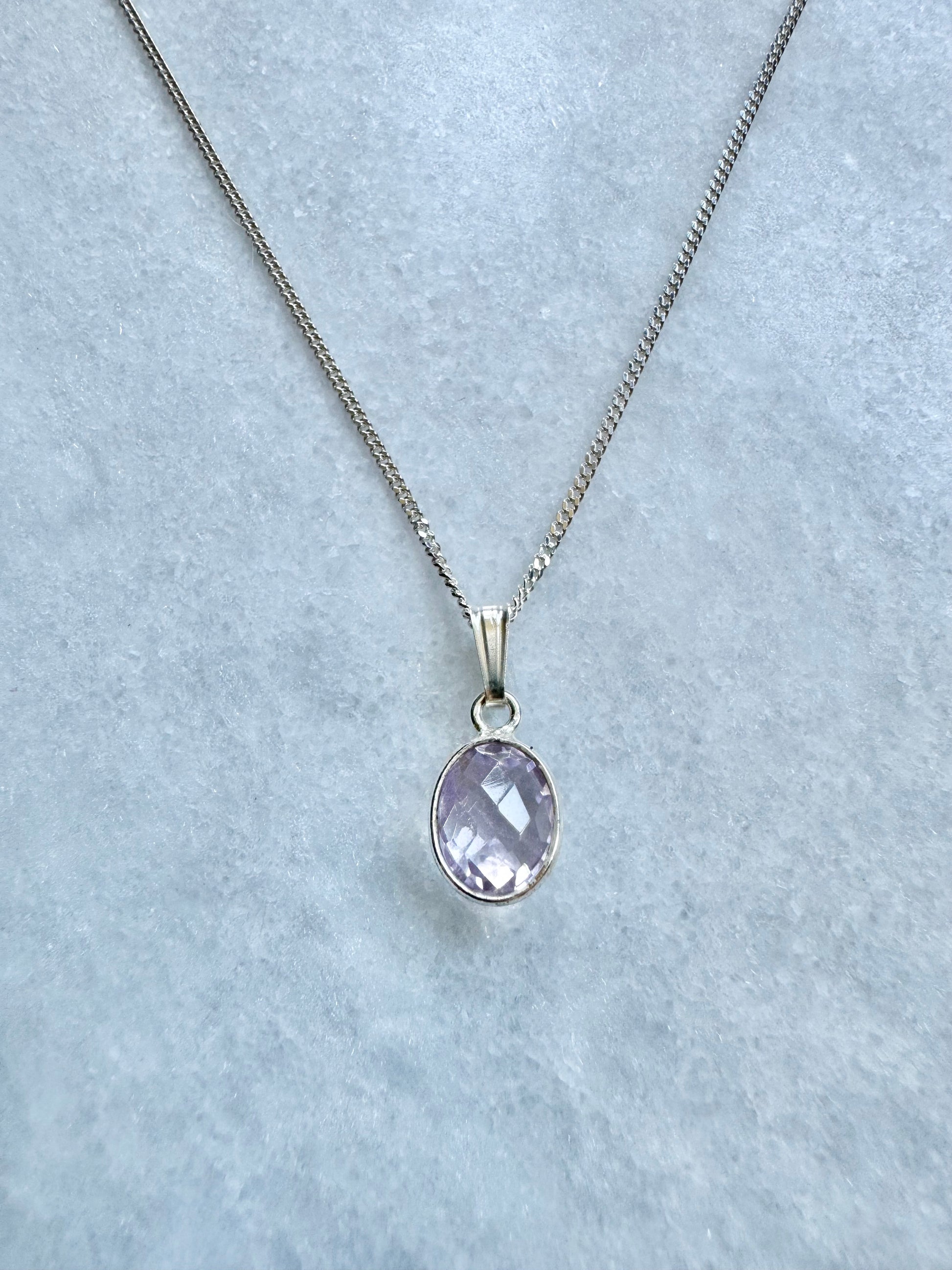 Petit pendentif ovale en améthyste sur une chaîne gourmette en argent sterling