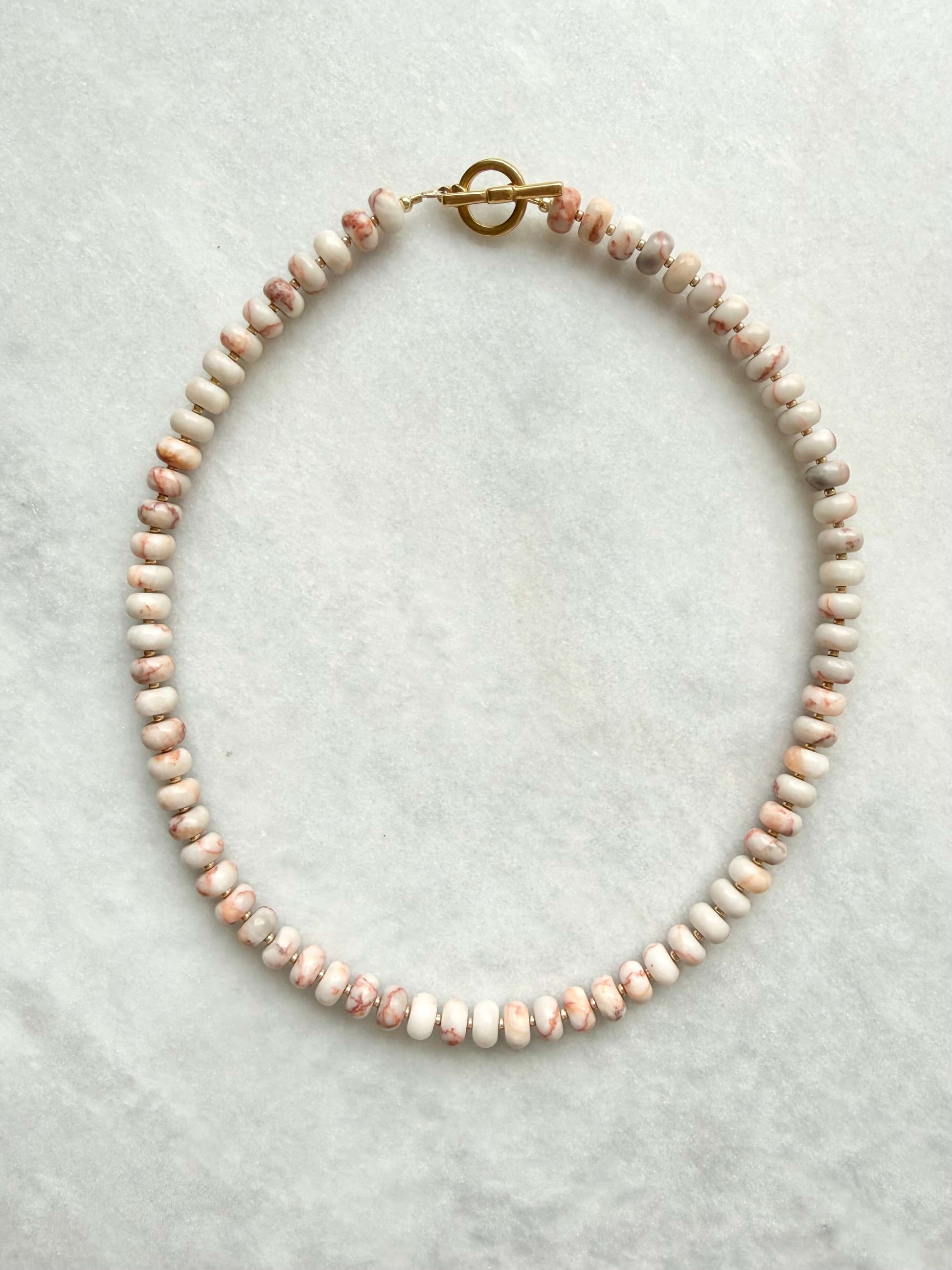 Collier rondelle d’agate mousse avec perles de graines miyuki dorées et fermoir à bascule en acier inoxydable rempli d’or / plaqué or