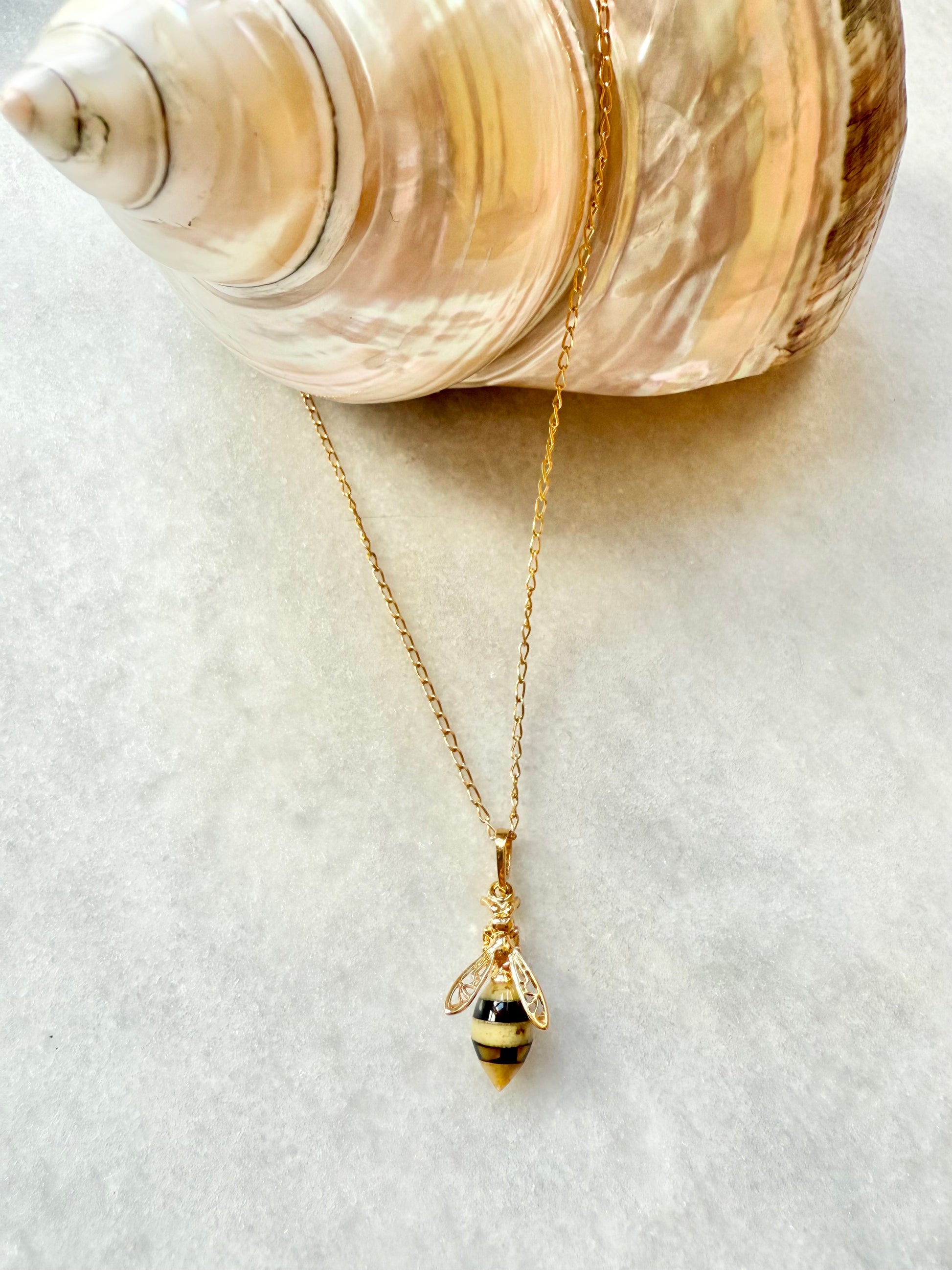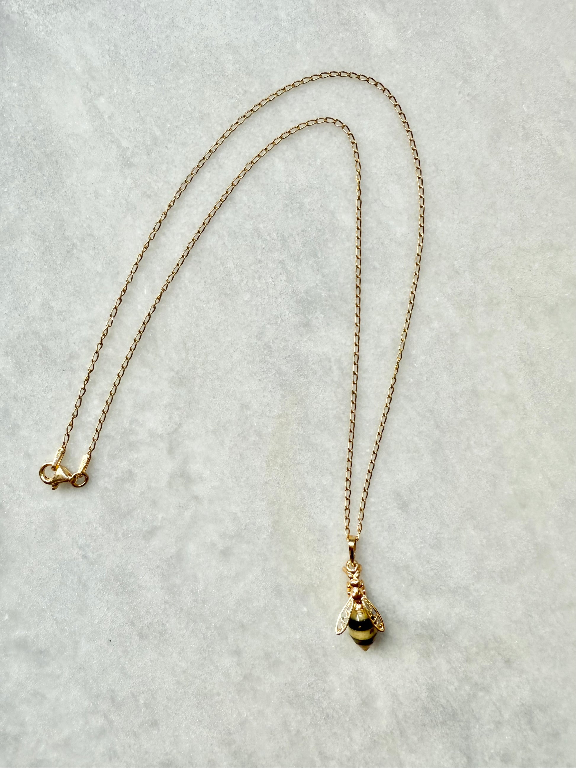 Amber Wasp Pendant Necklace / Gold Vermeil