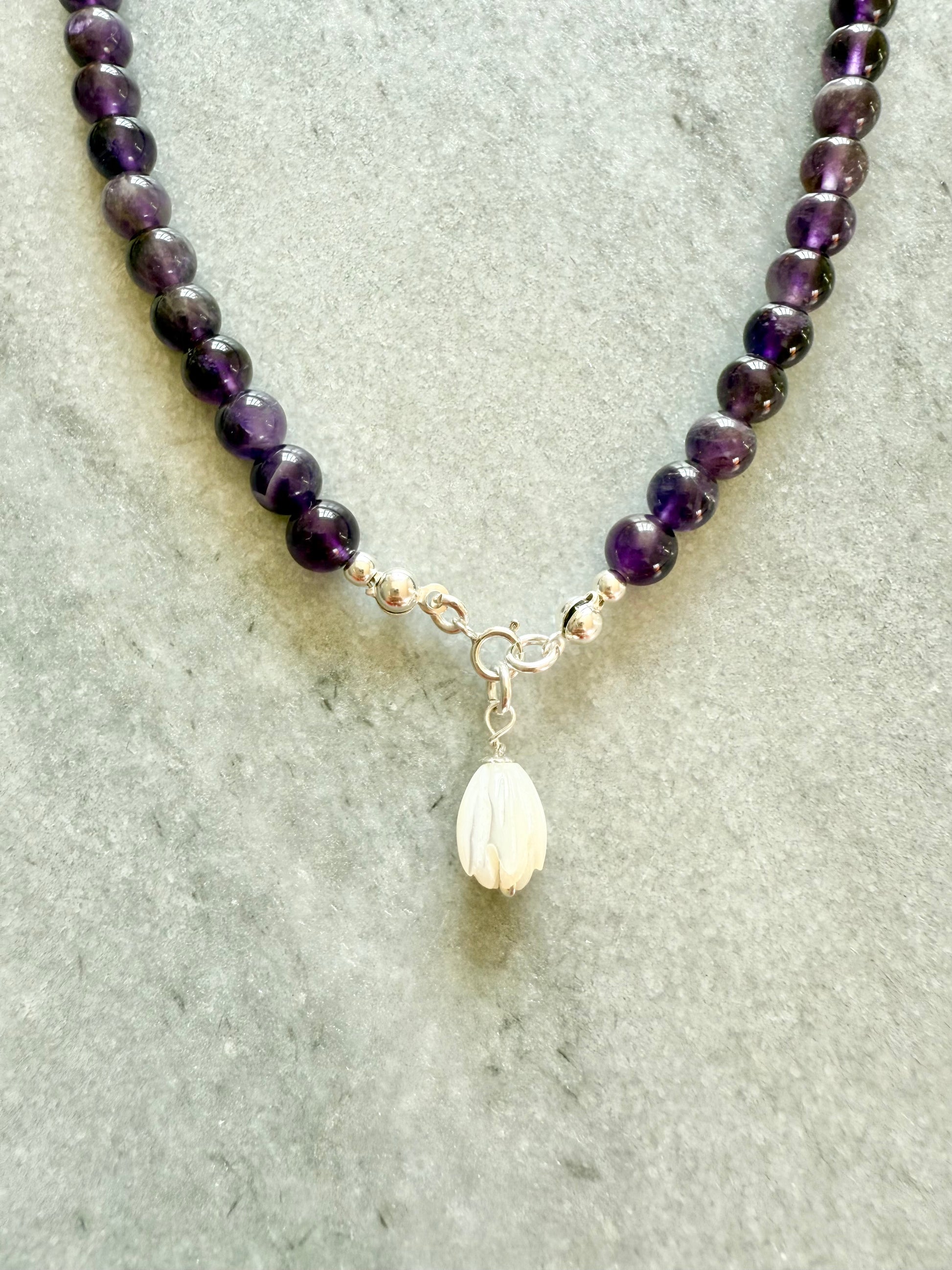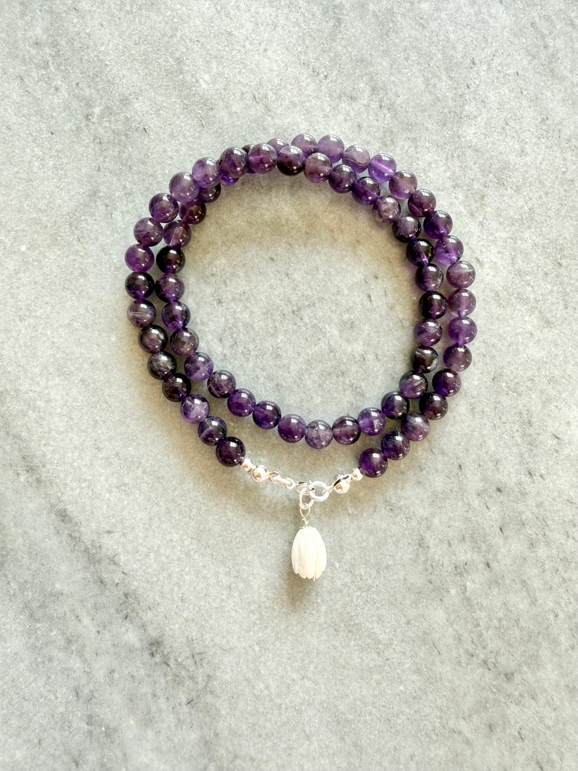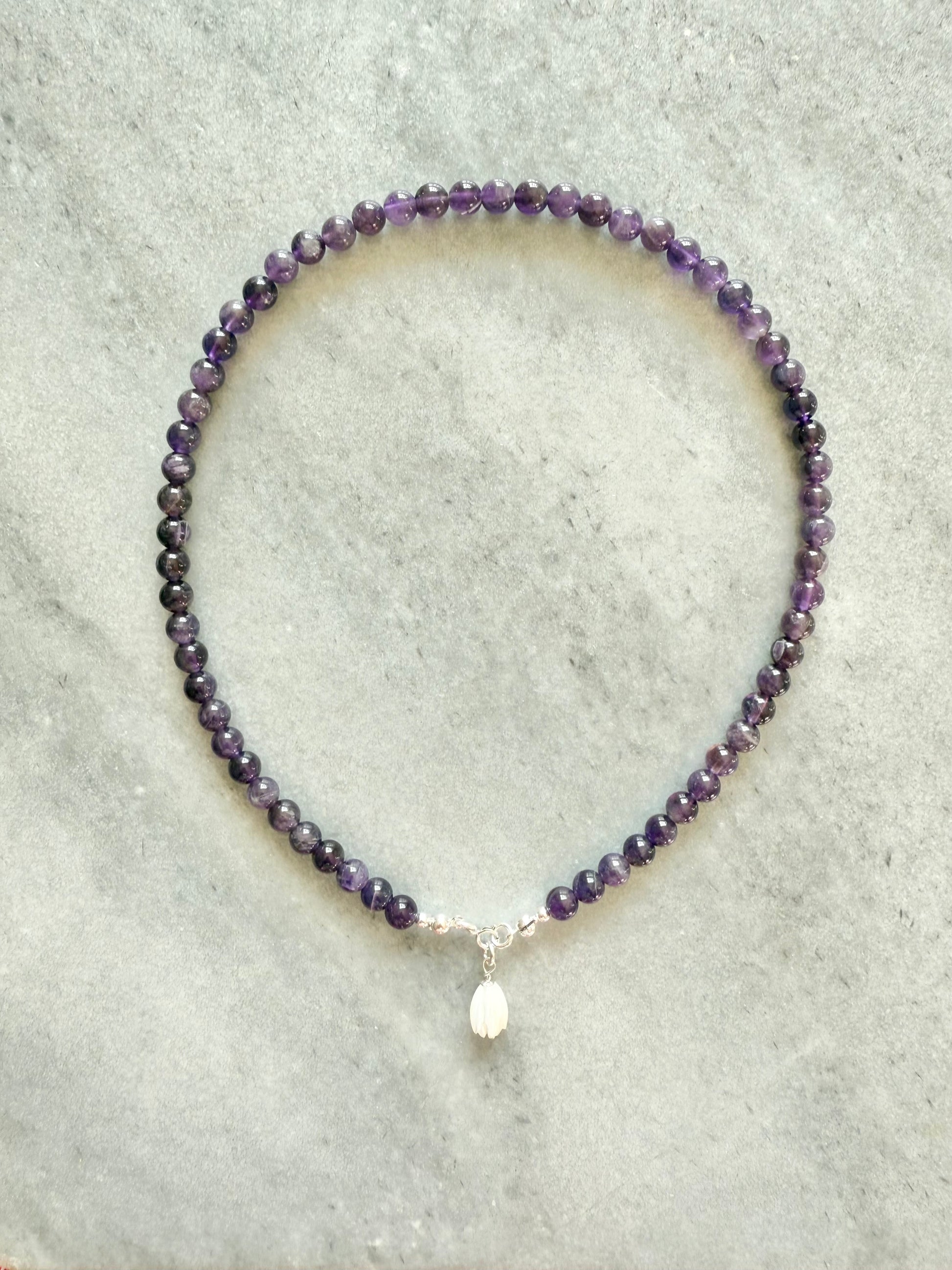 This necklace is handcrafted using dark Amethyst beads, each chosen for its unique colour and natural character.