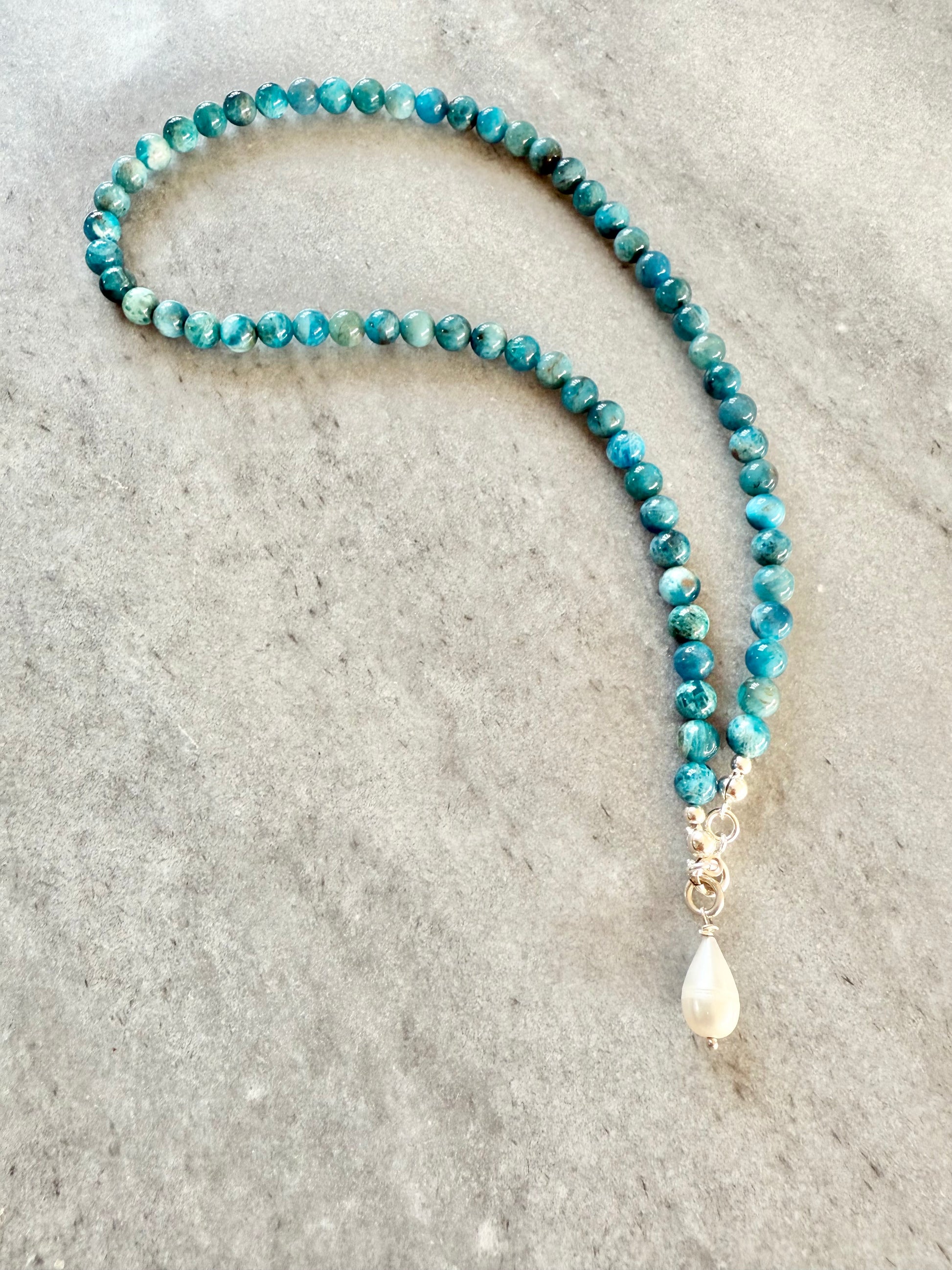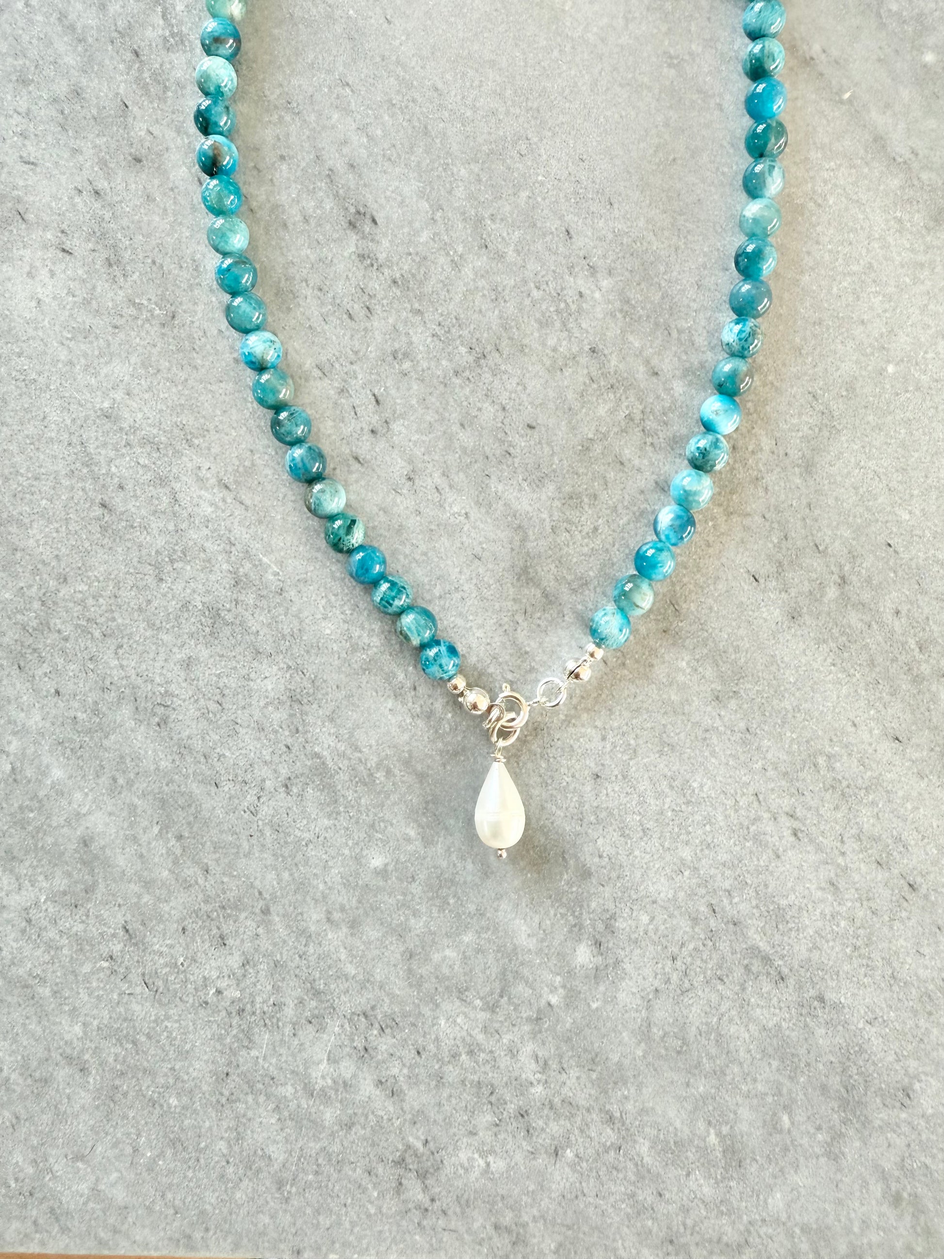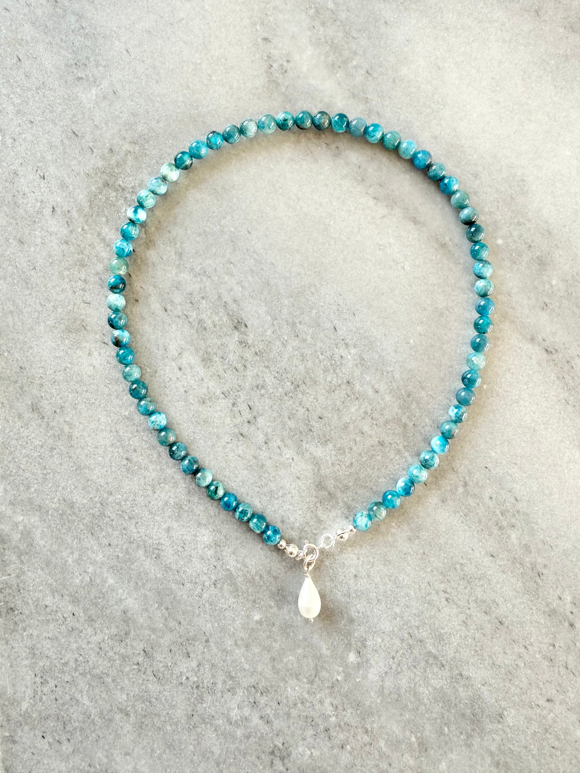 This necklace is handcrafted using vibrant Apatite beads, each chosen for its unique colour and natural character.