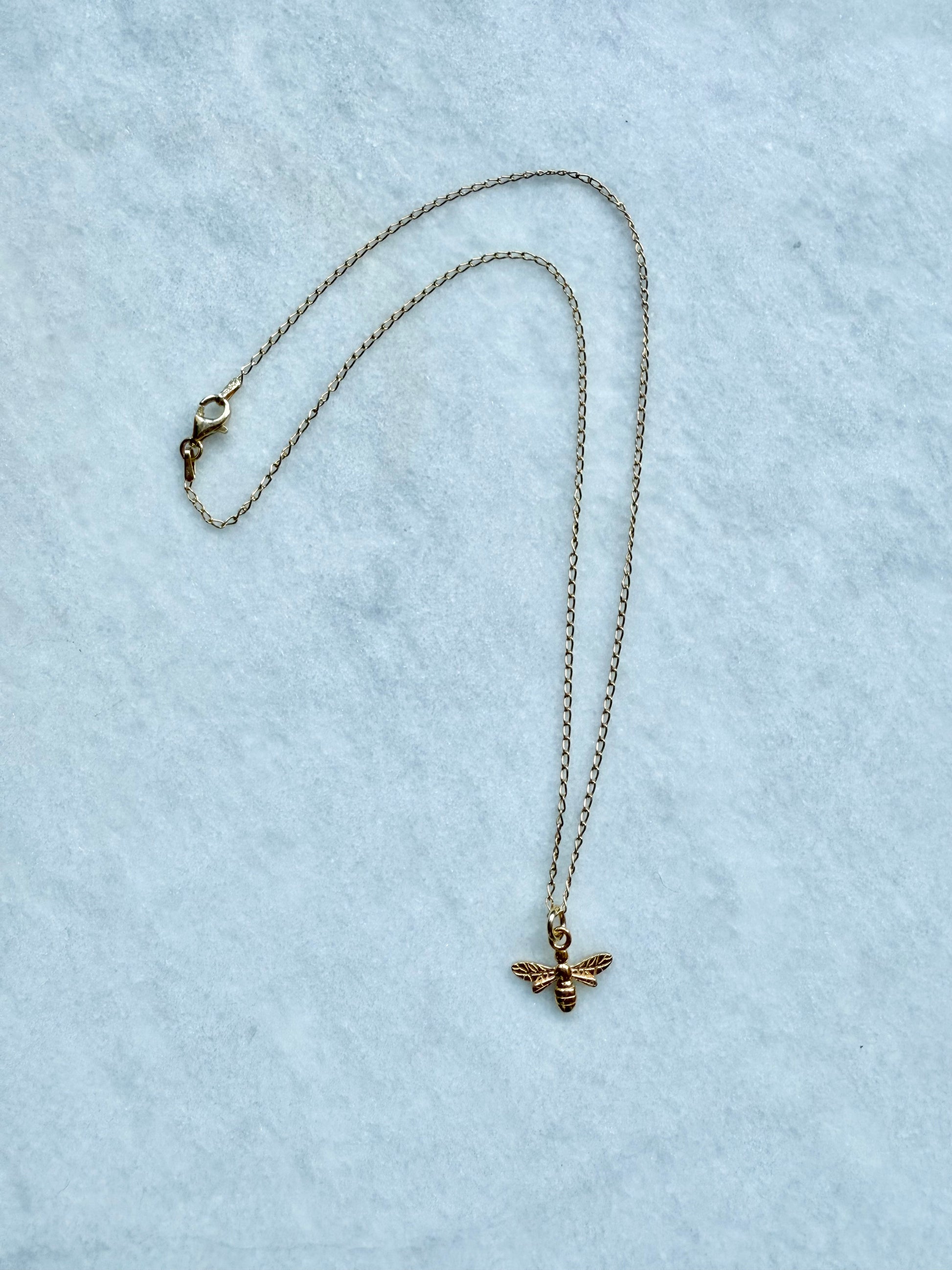 This beautifully detailed bee charm hangs delicately from a classic curb chain, making it a versitale piece for everyday wear or special occassions.