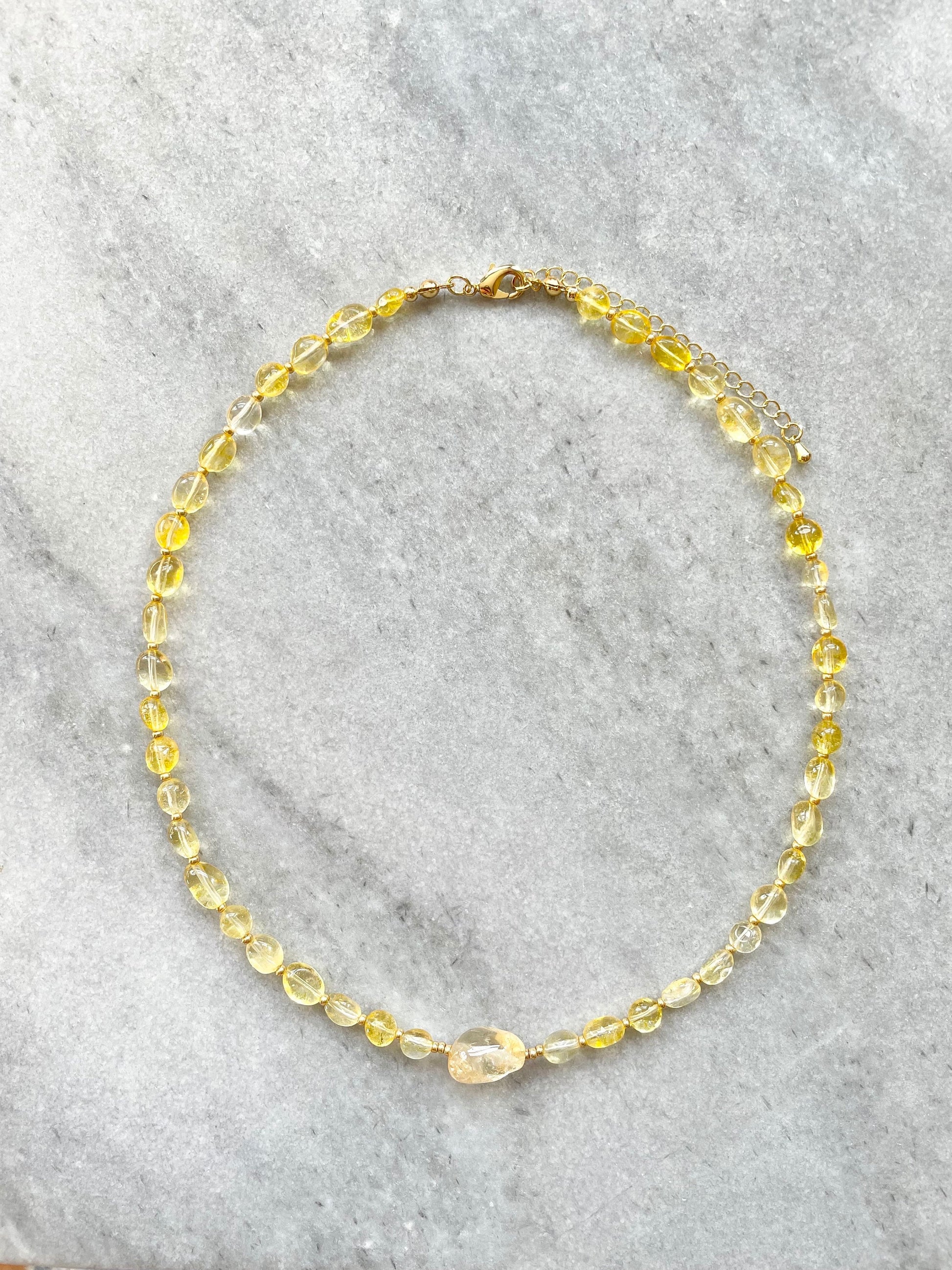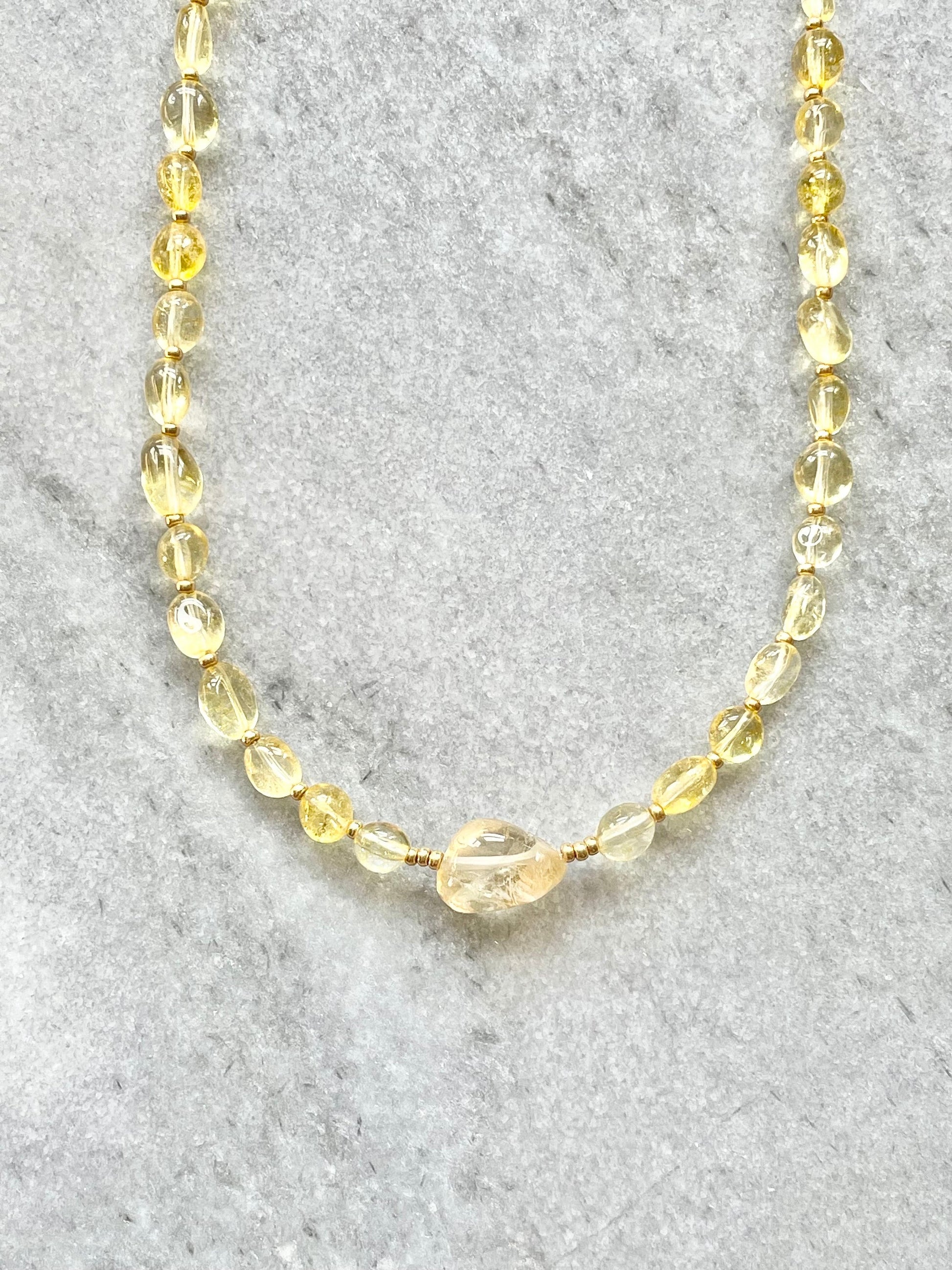 Citrine beaded necklace with gold miyuki spacer beads and a gold vermeil lobster clasp