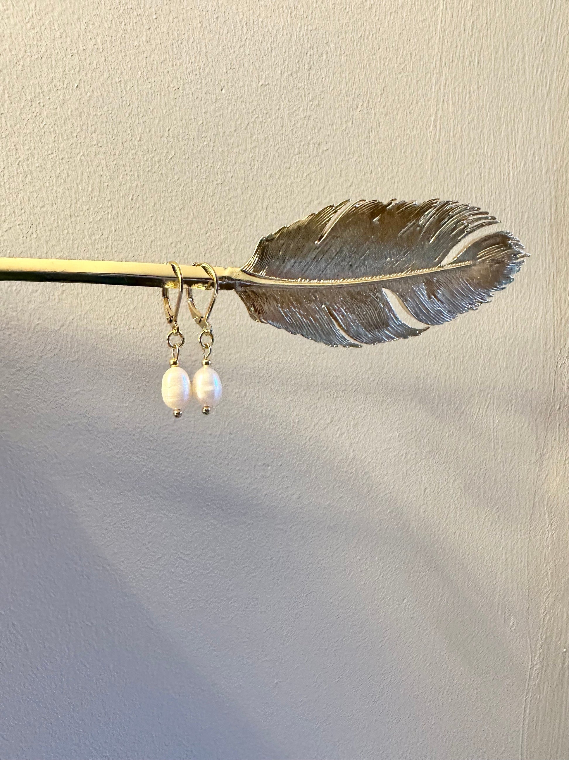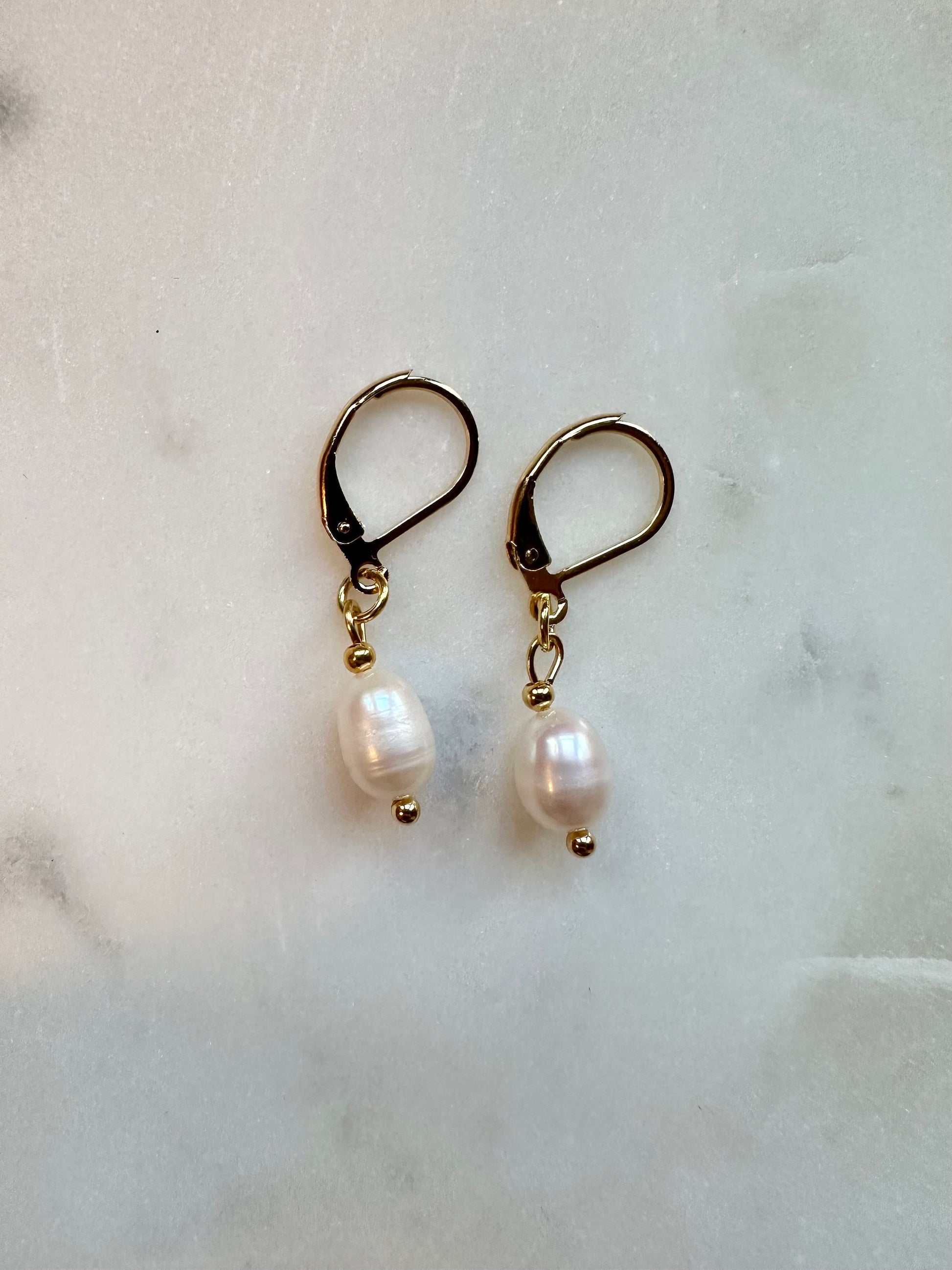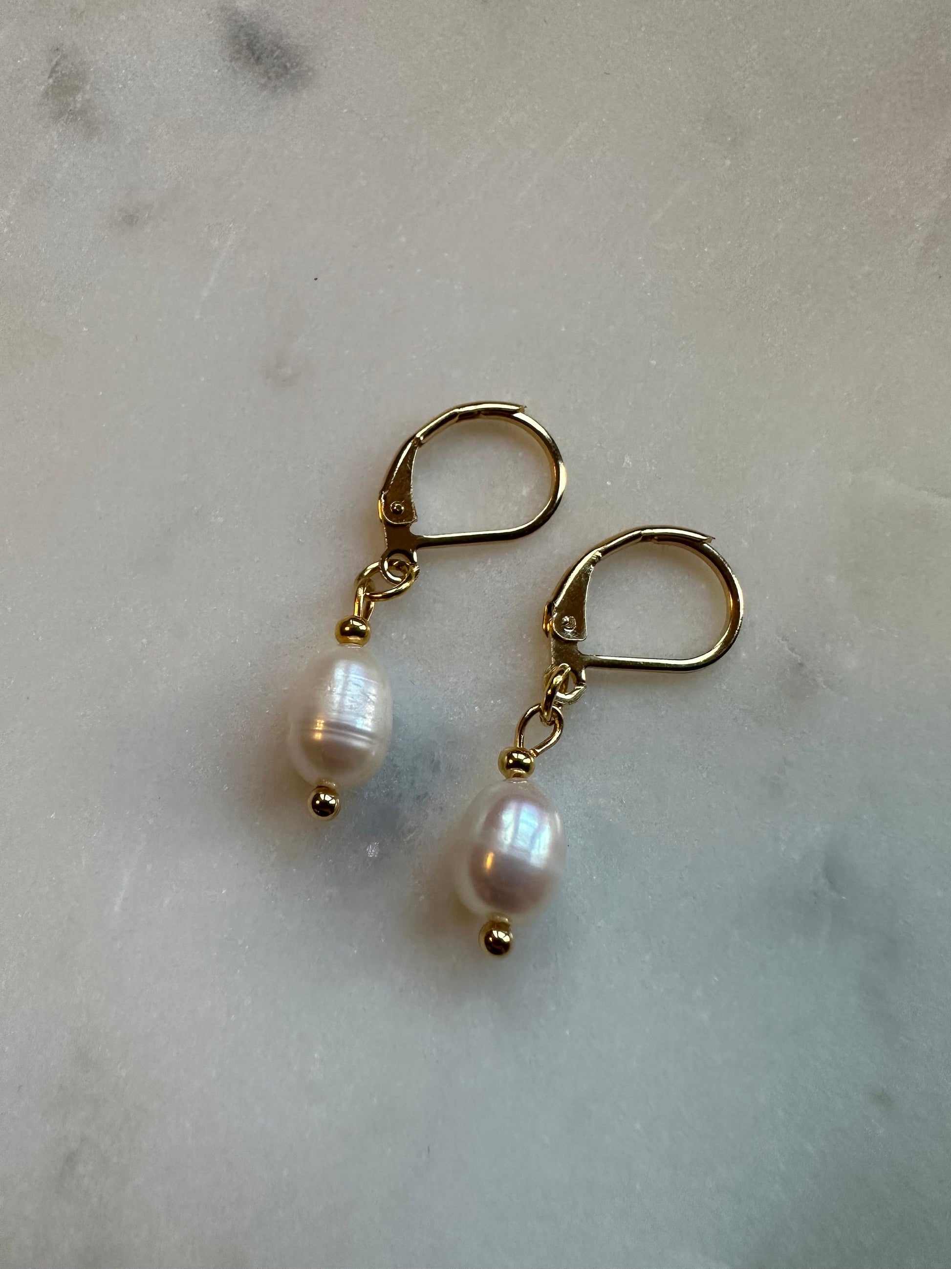 These classic earrings are made with oval freshwater pearls and gold vermeil leverback hooks.