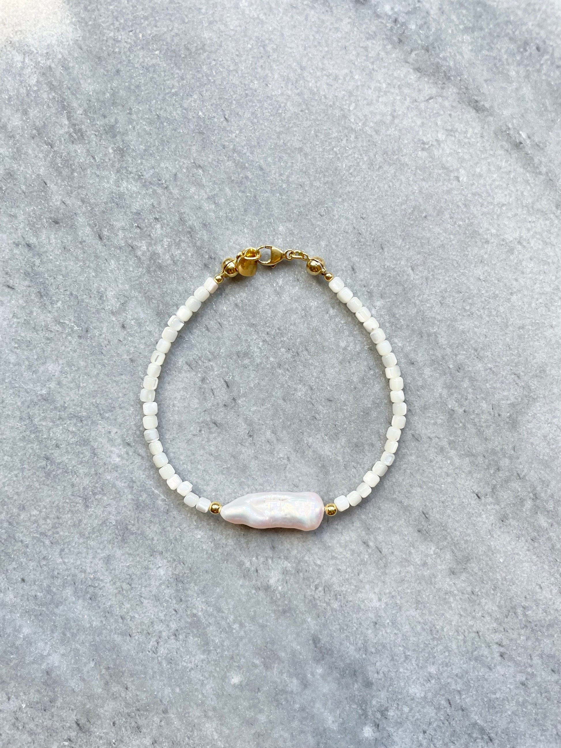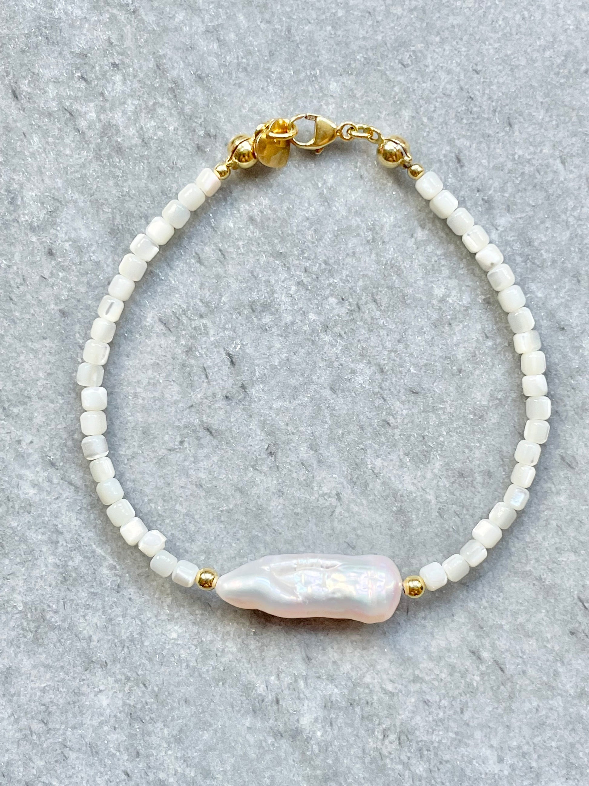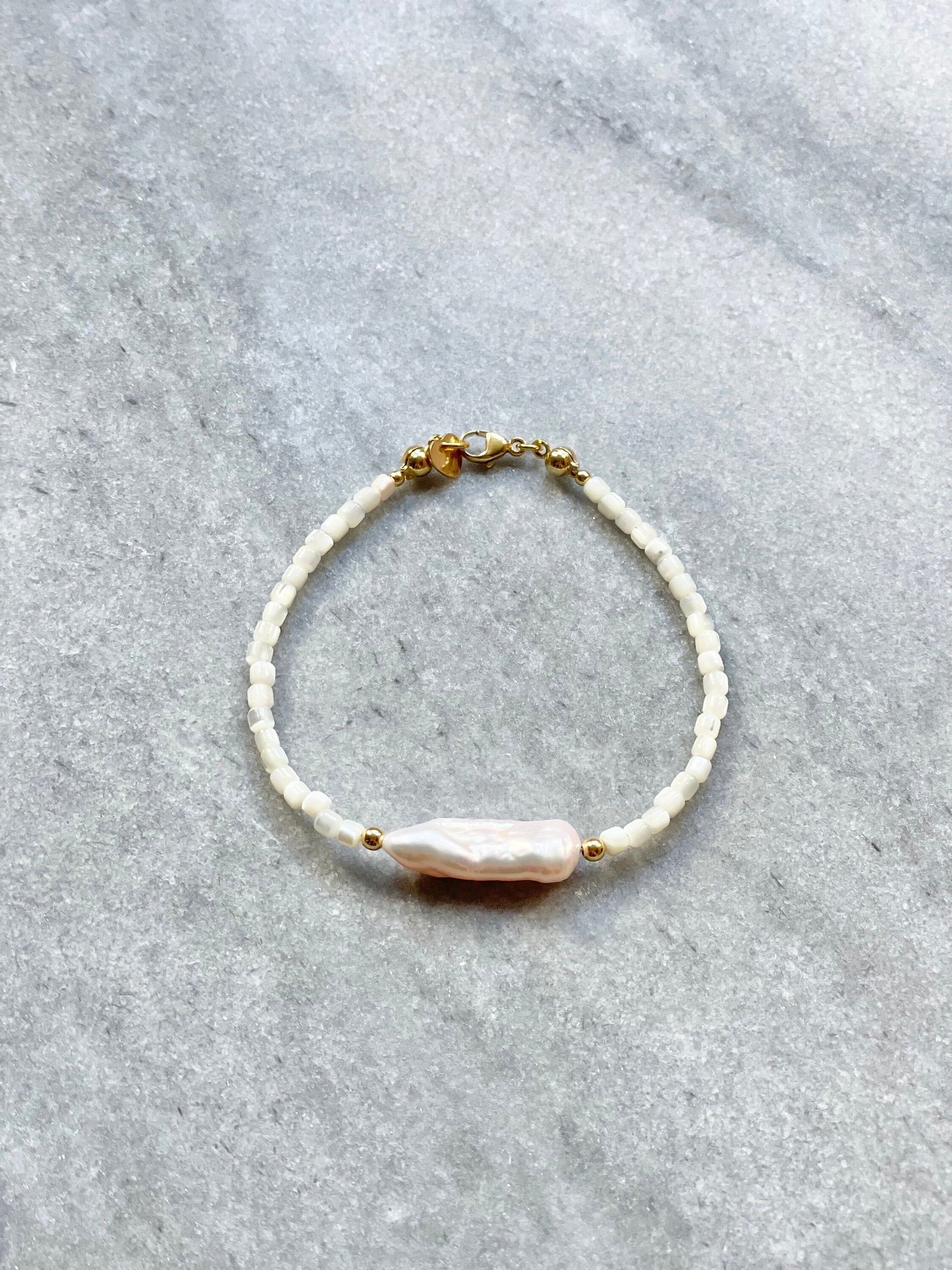 Please note that biwa pearls are unique gemstones and therefore their shape may vary for each bracelet.