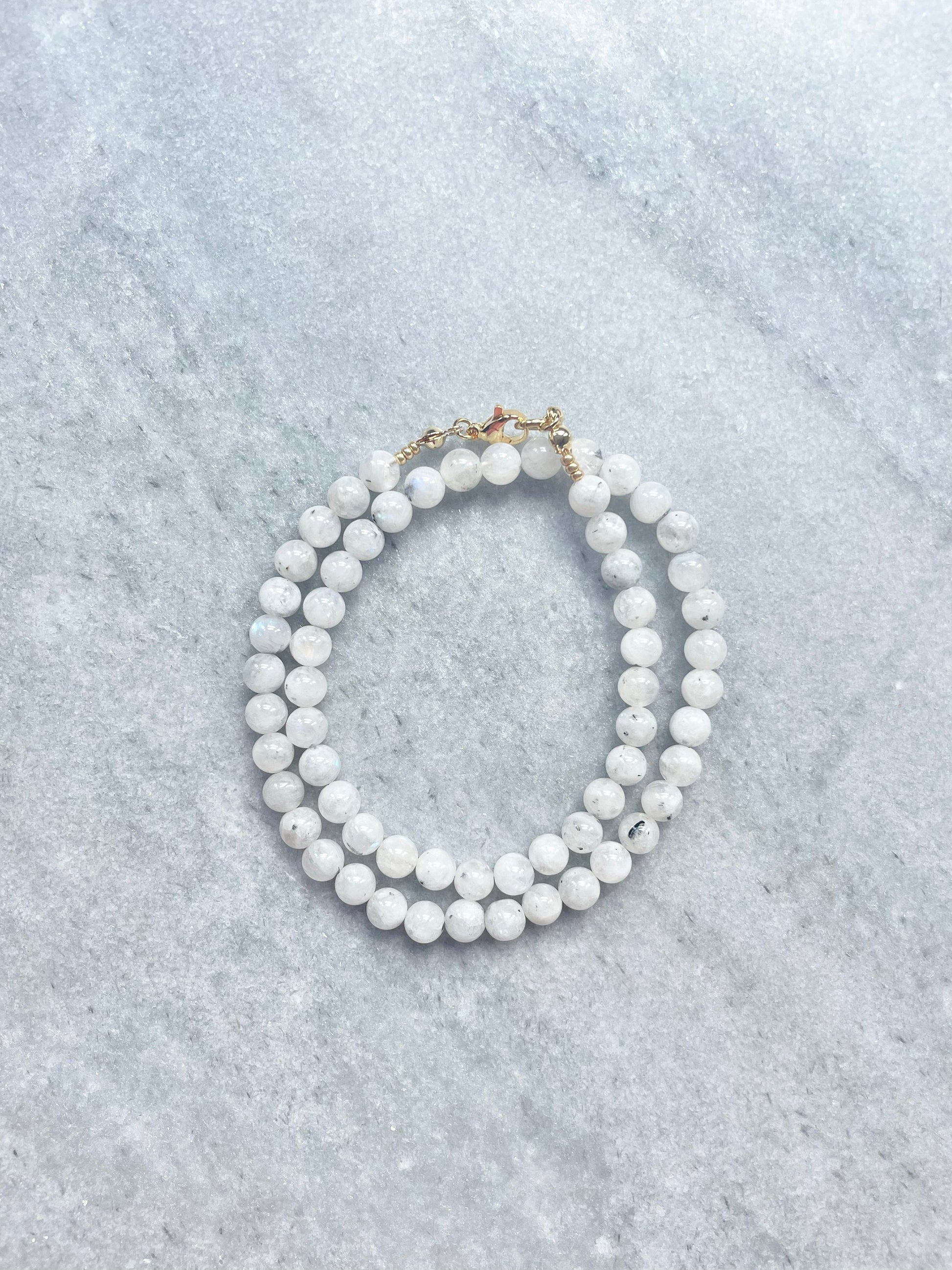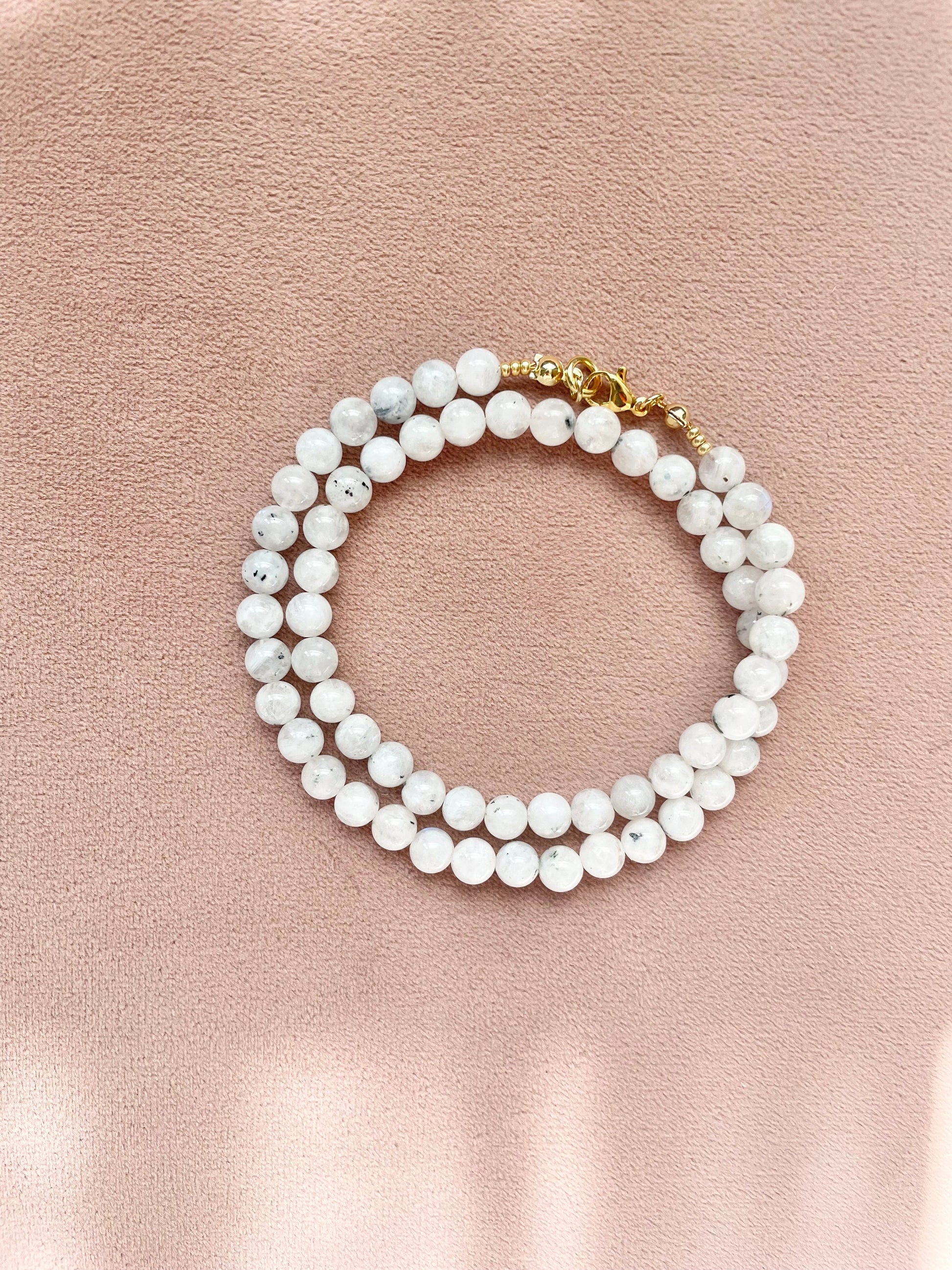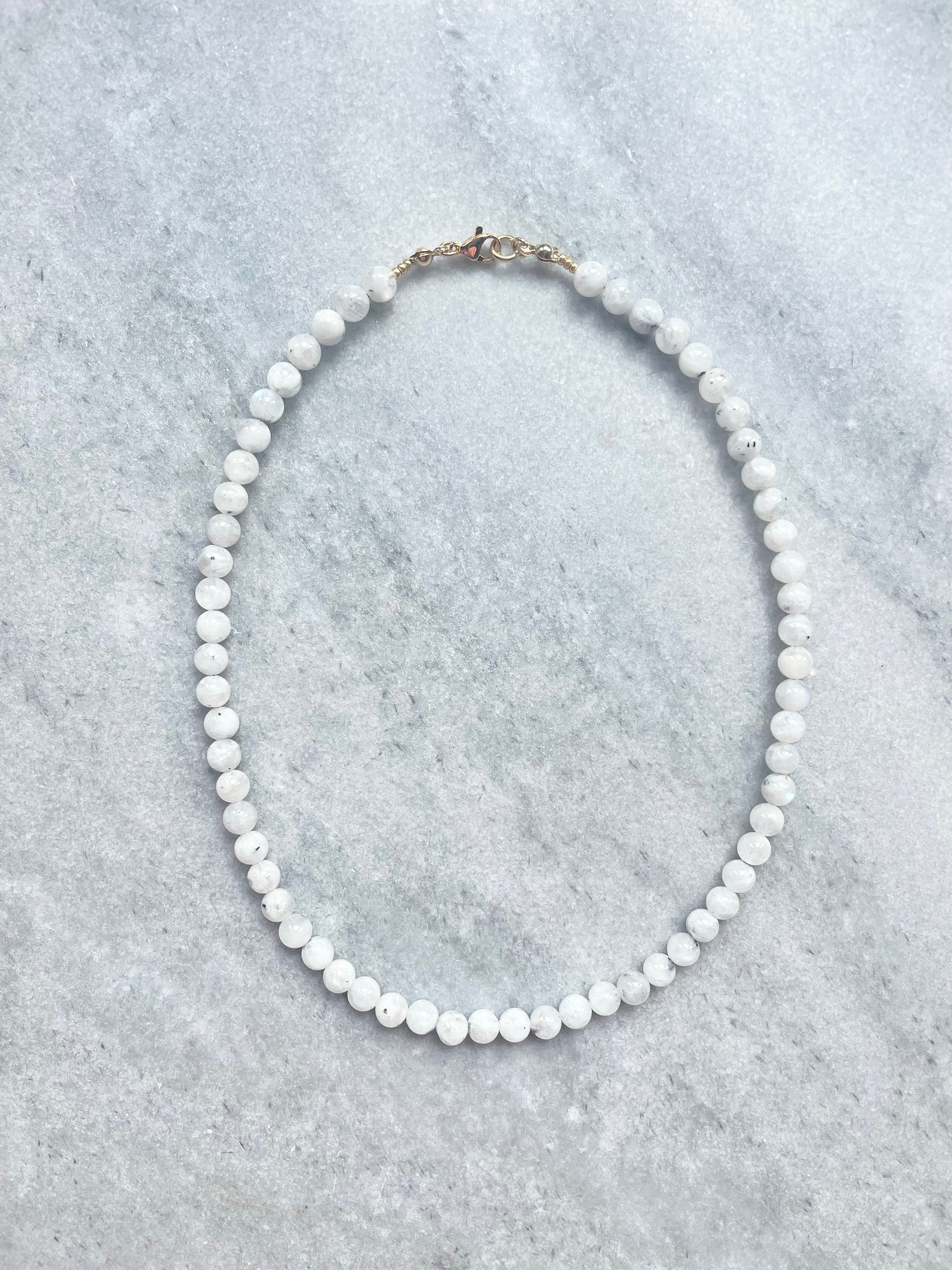 This necklace has been made of moonstone beads and finished with a gold vermeil lobster clasp.
