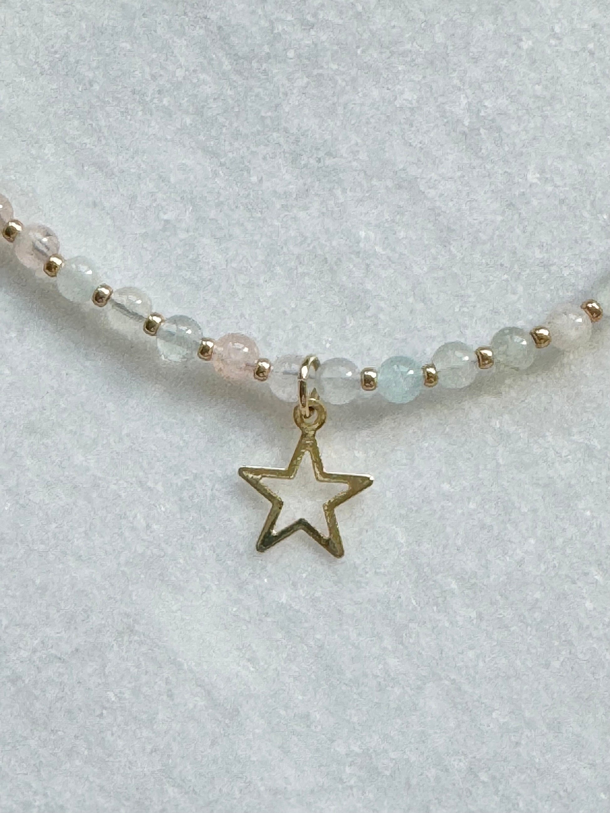 Dainty Morganite & Aquamarine Necklace / Star Charm