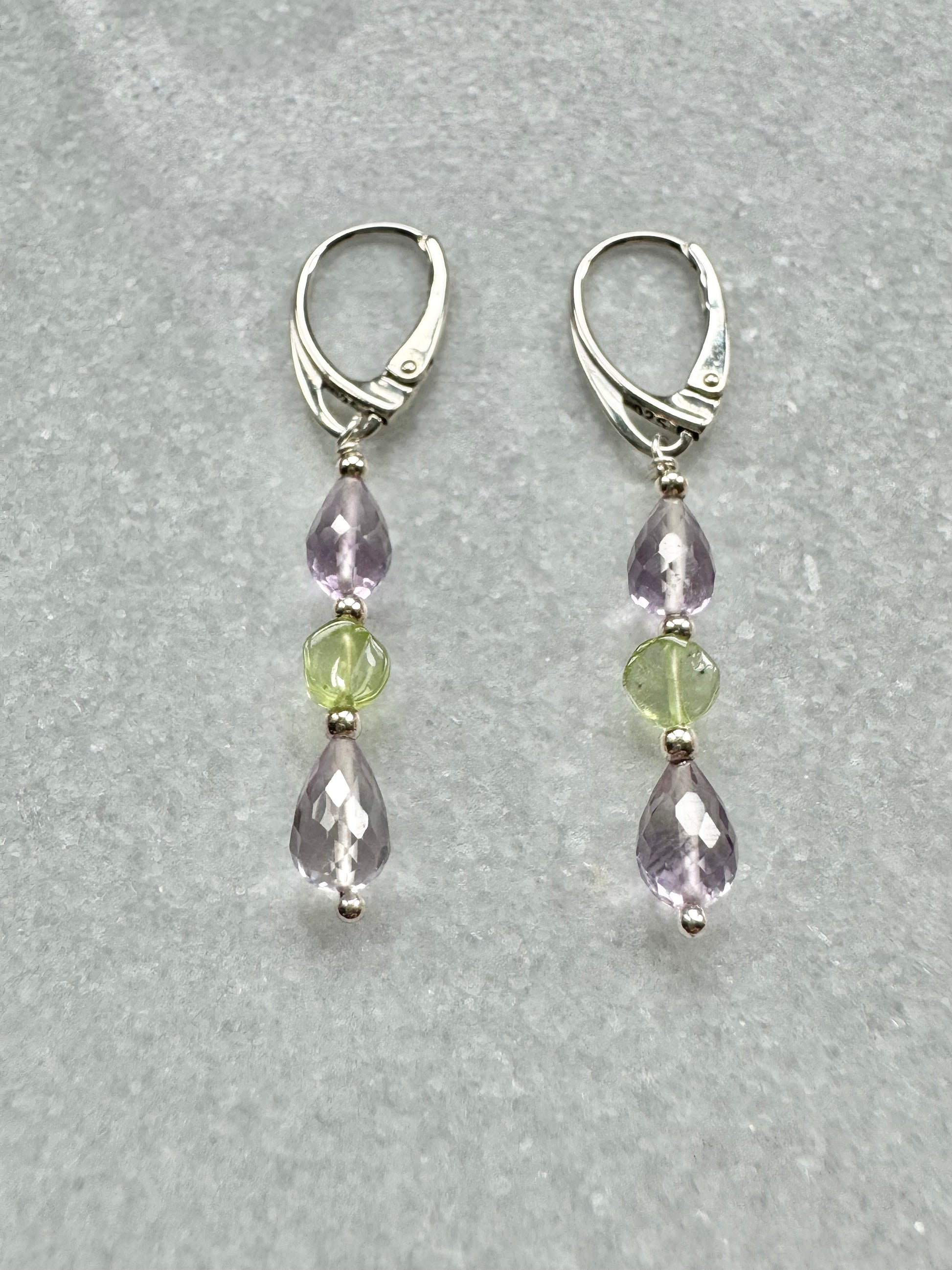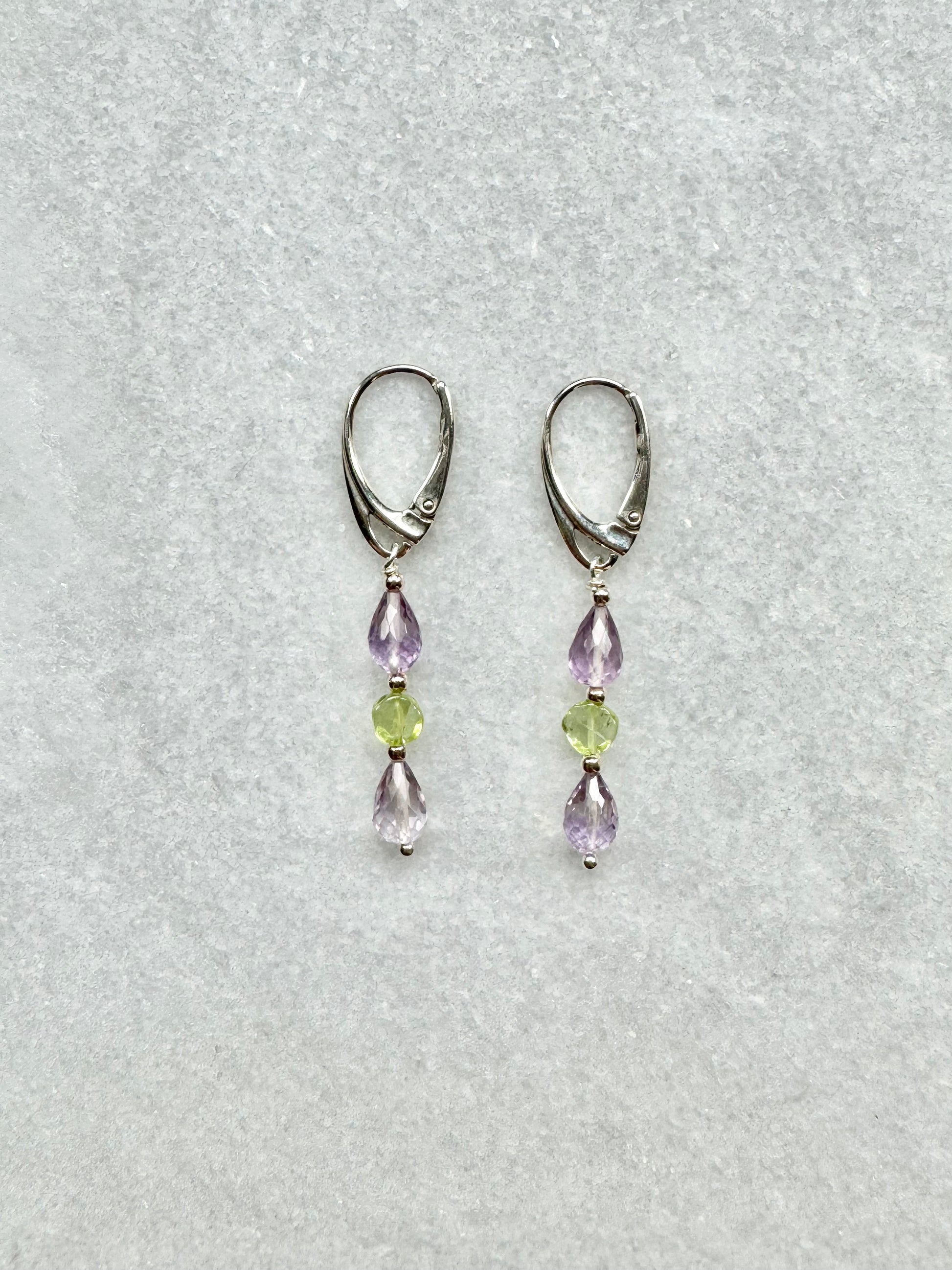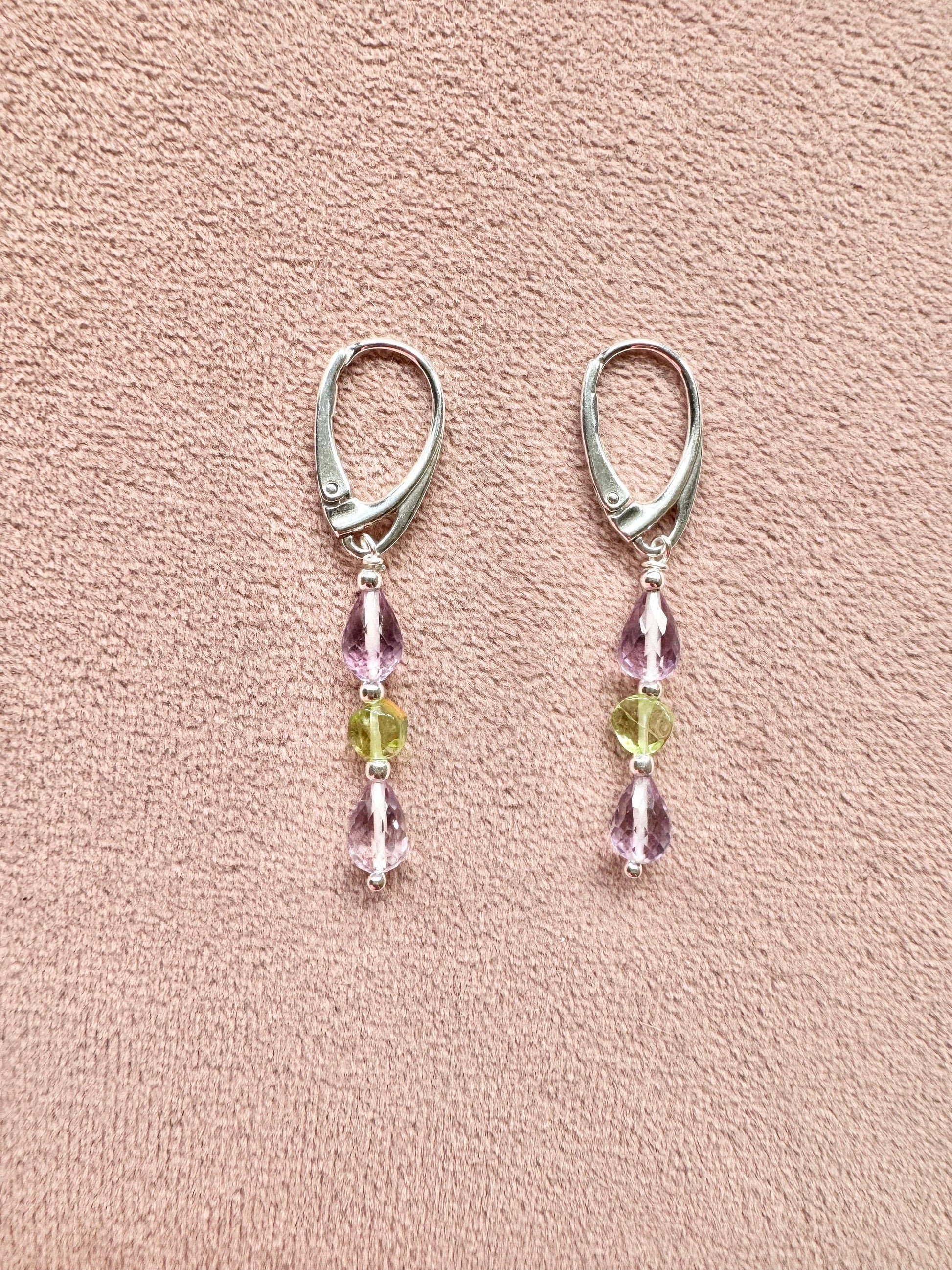 Morning Dew Amethyst & Peridot Silver Earrings