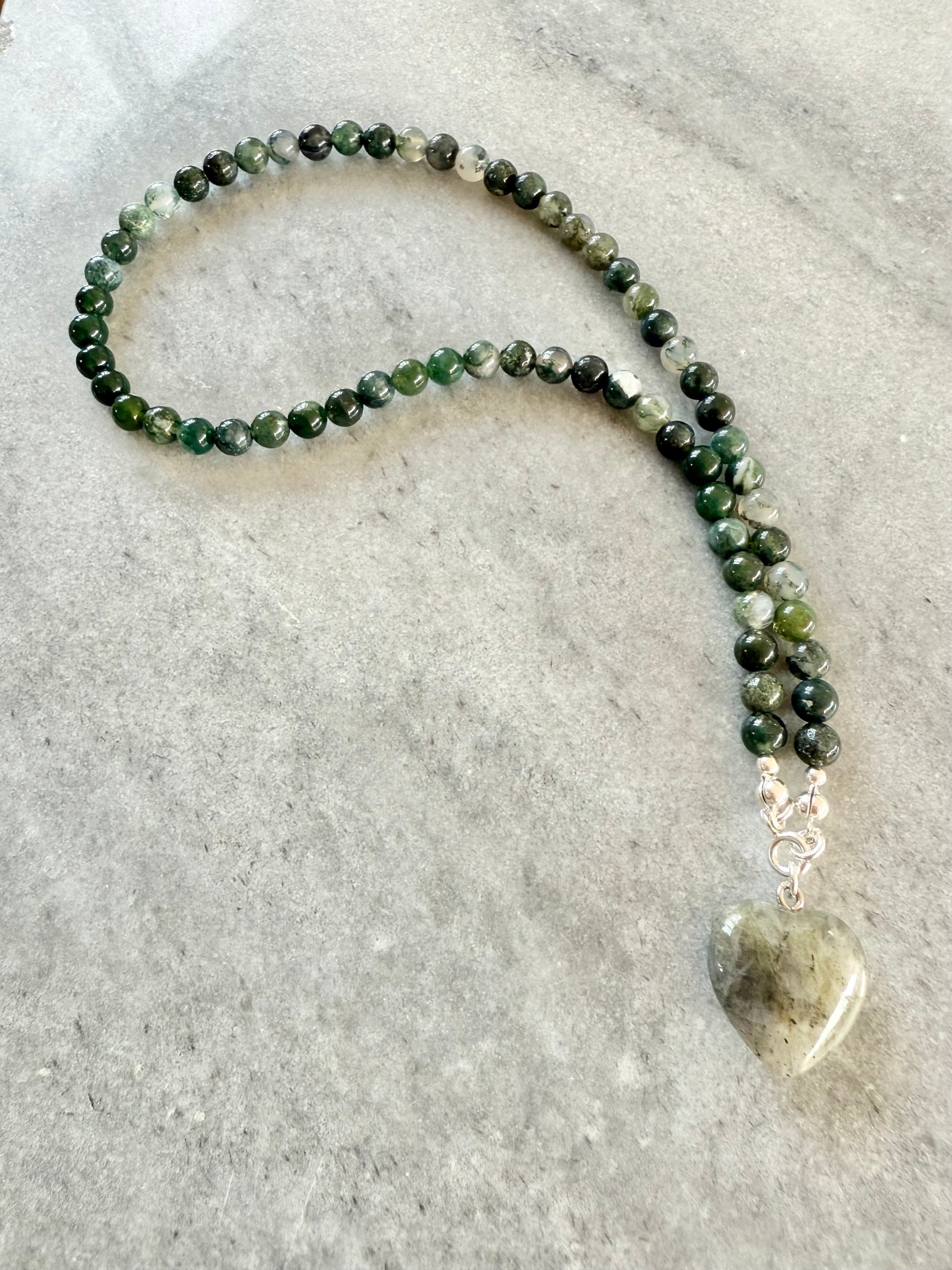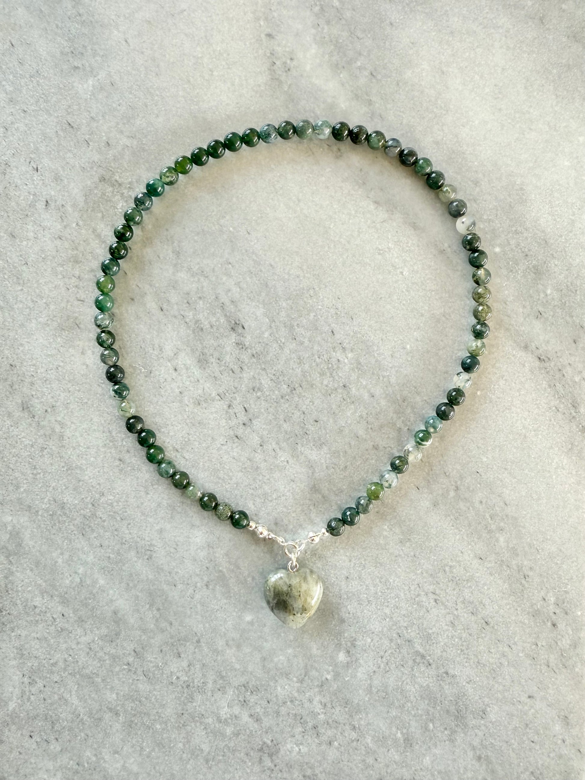 This necklace is handcrafted using Moss Agate beads, each chosen for its unique colour and natural character.