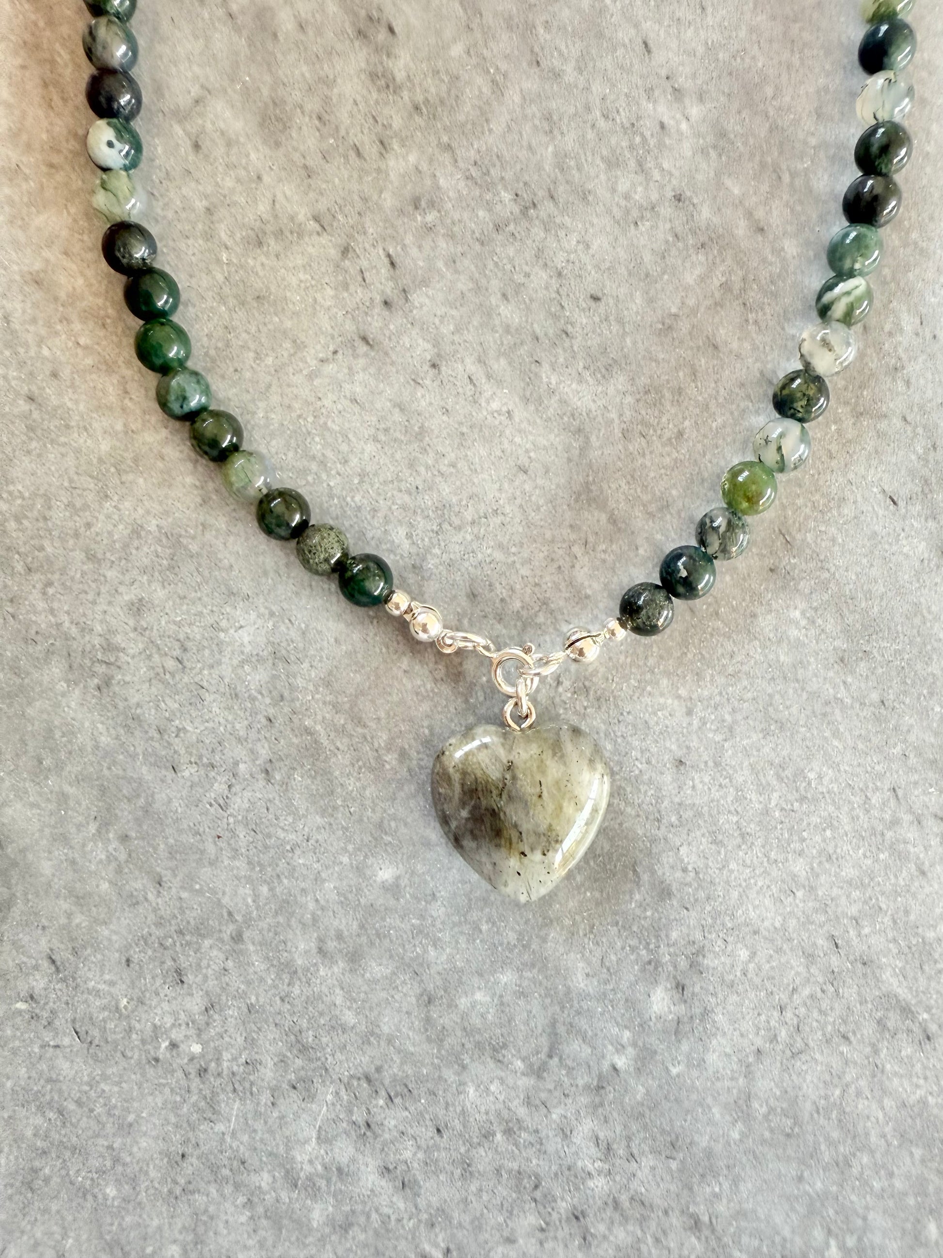It features a secure sterling silver clasp and a detachable Labradorite heart charm, giving you the option to personalise your look.