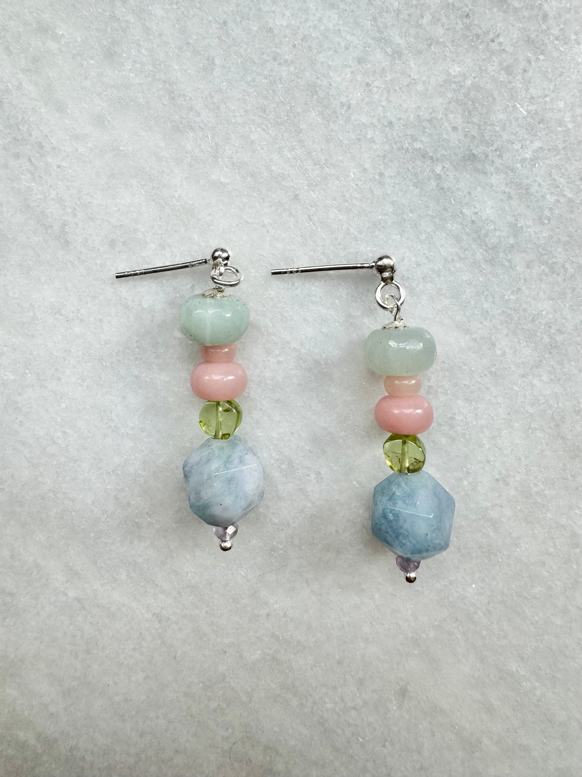 gemstones: pink opal, peridot, amazonite, aquamarine