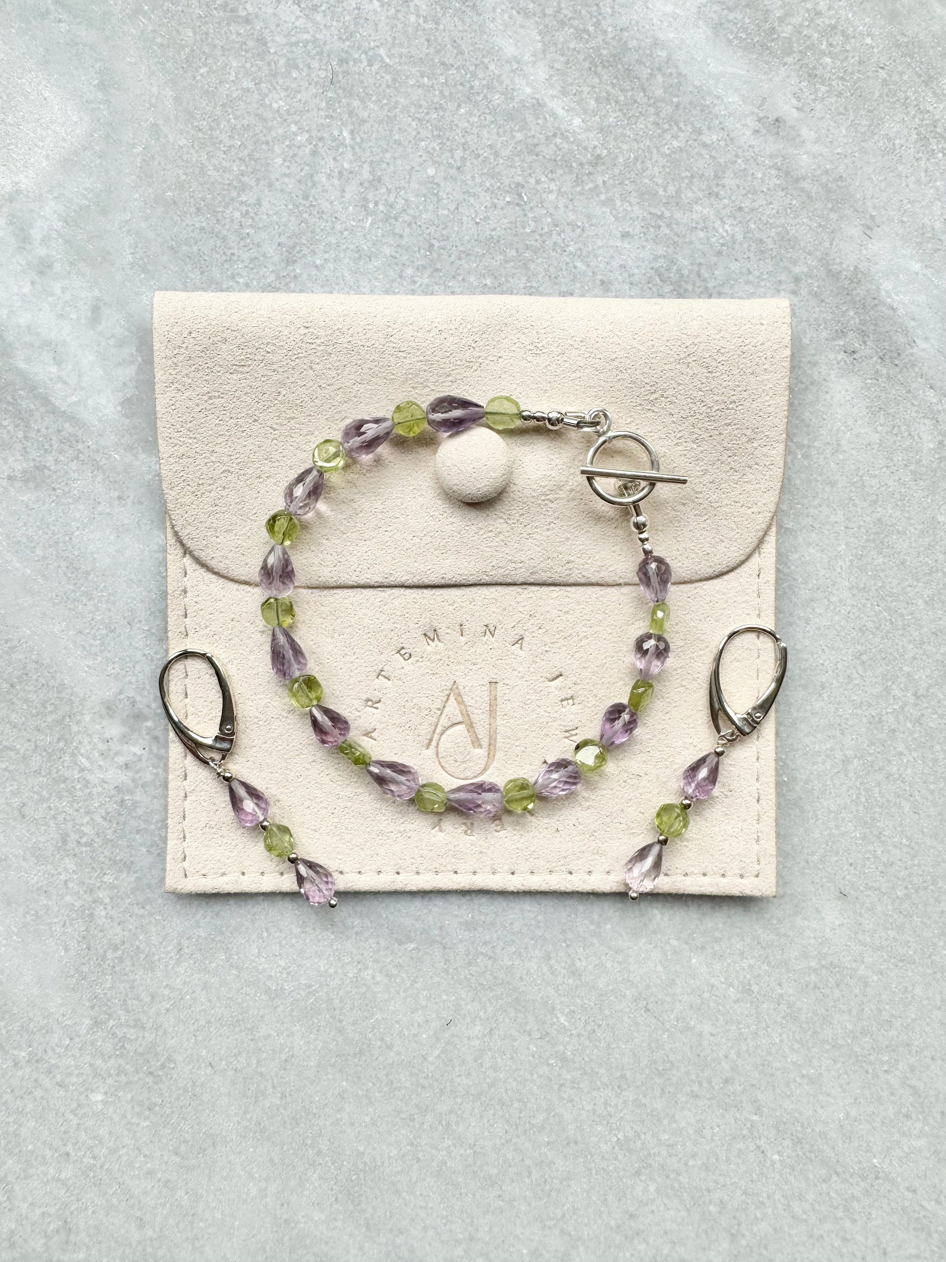 Morning Dew Pink Amethyst & Peridot Silver Bracelet