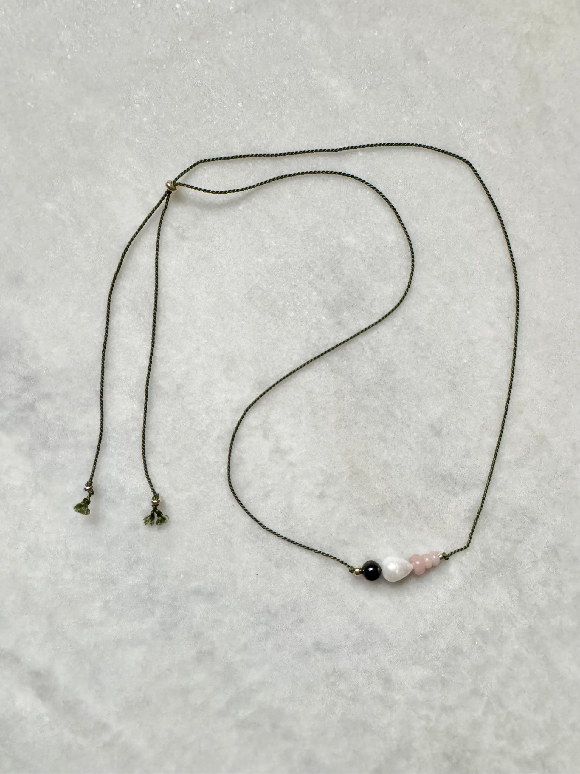 Each necklace is meticulously finished with gold vermeil beads and threaded on a soft, adjustable silk cord for versatile styling.