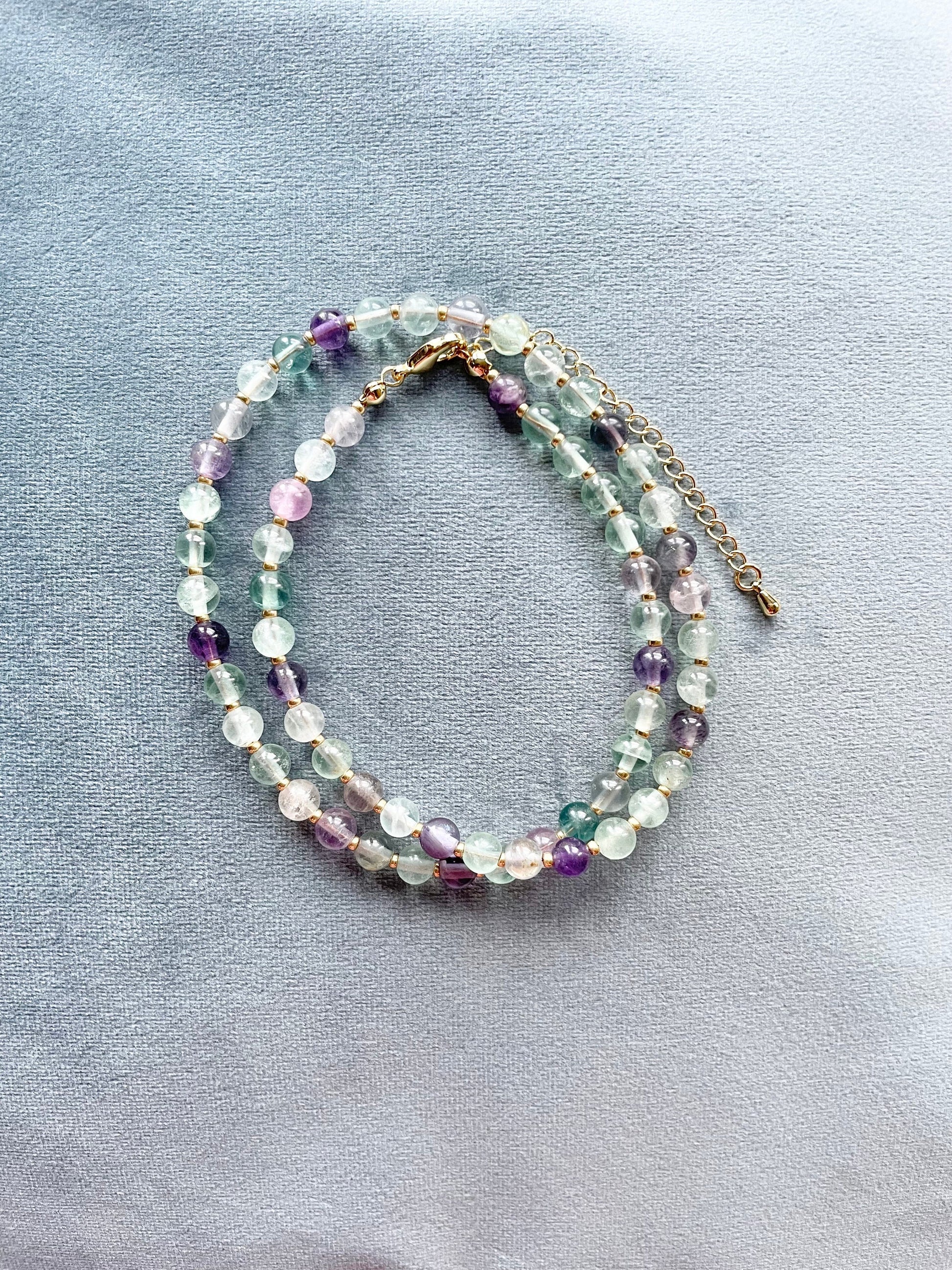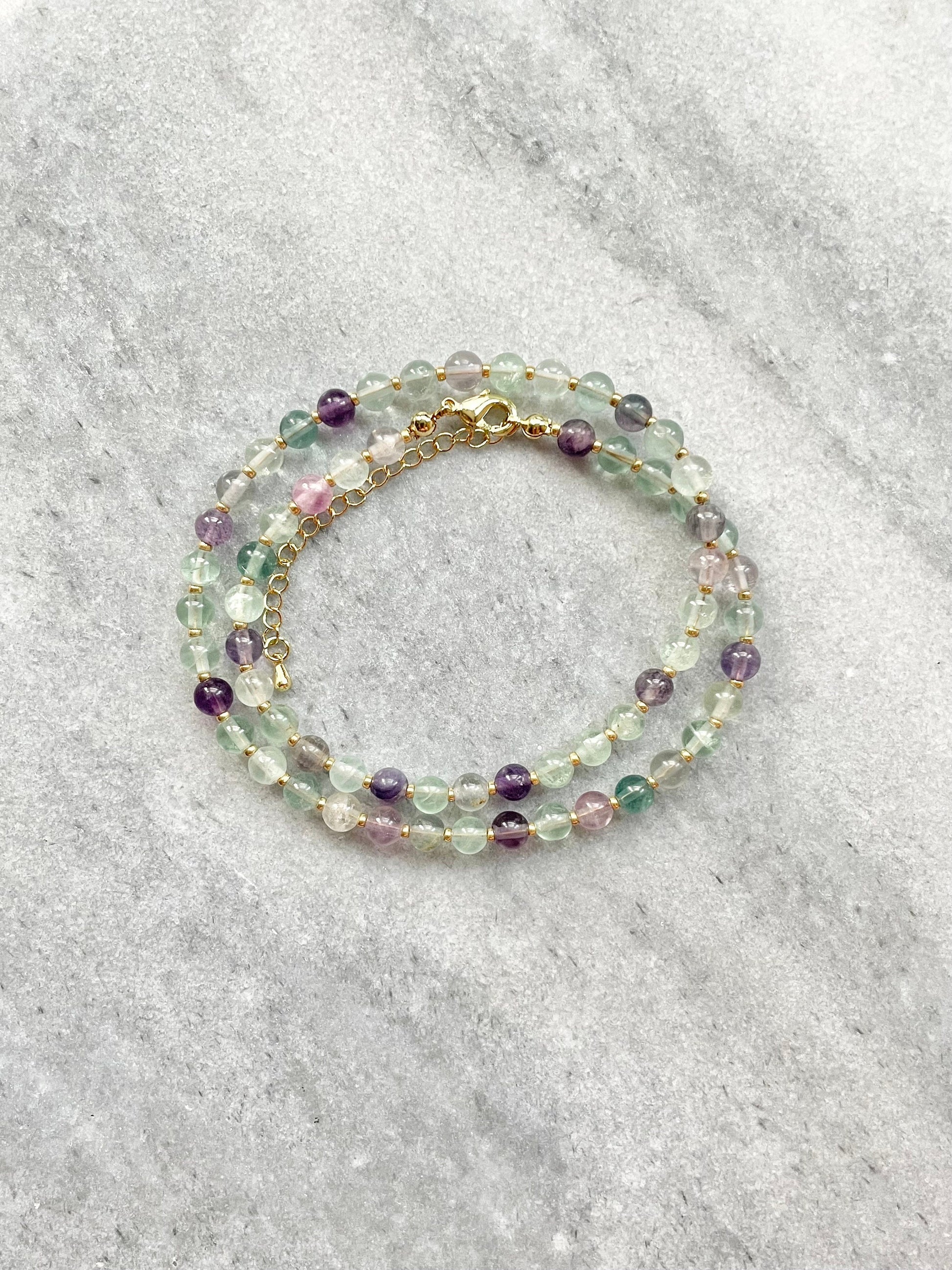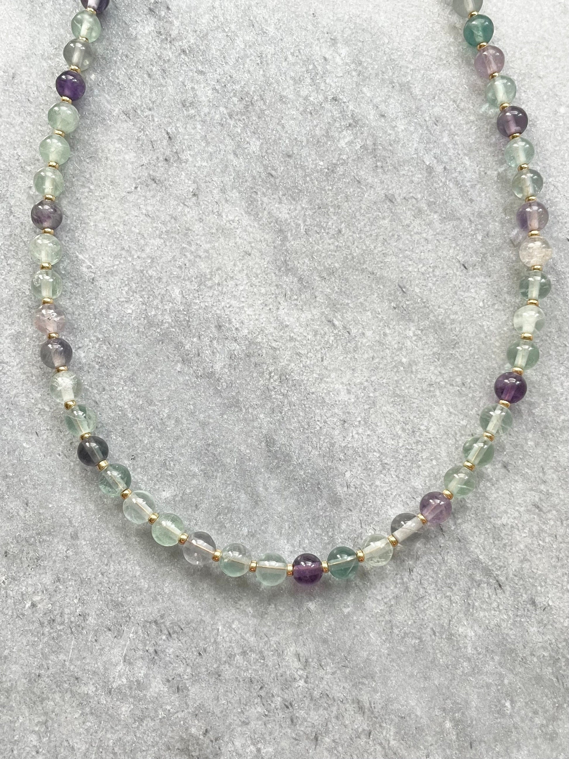 Rainbow Fluorite Candy Necklace / Gold Vermeil