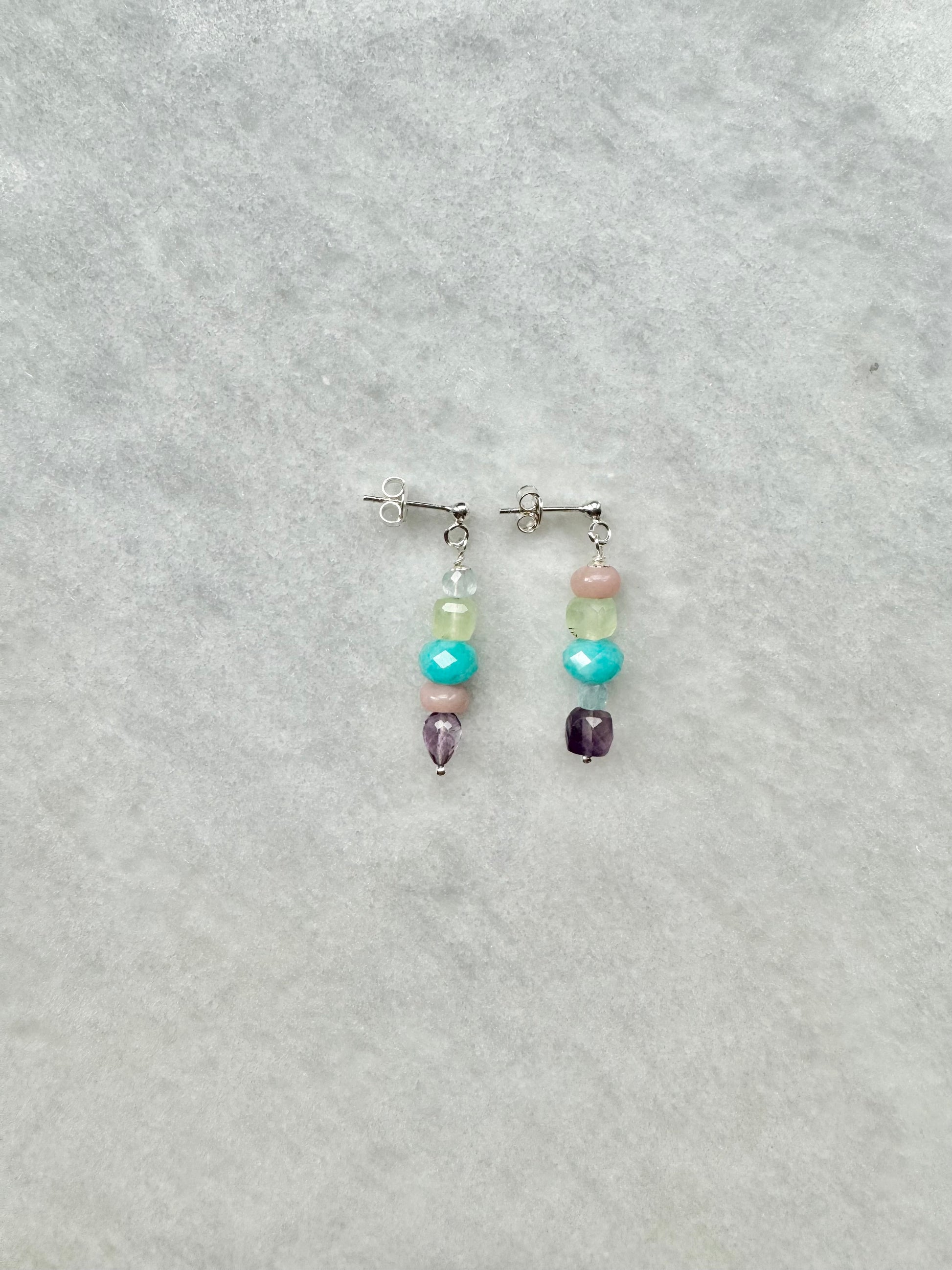 gemstones: pink opal, prehnite, amazonite, aquamarine, amethyst