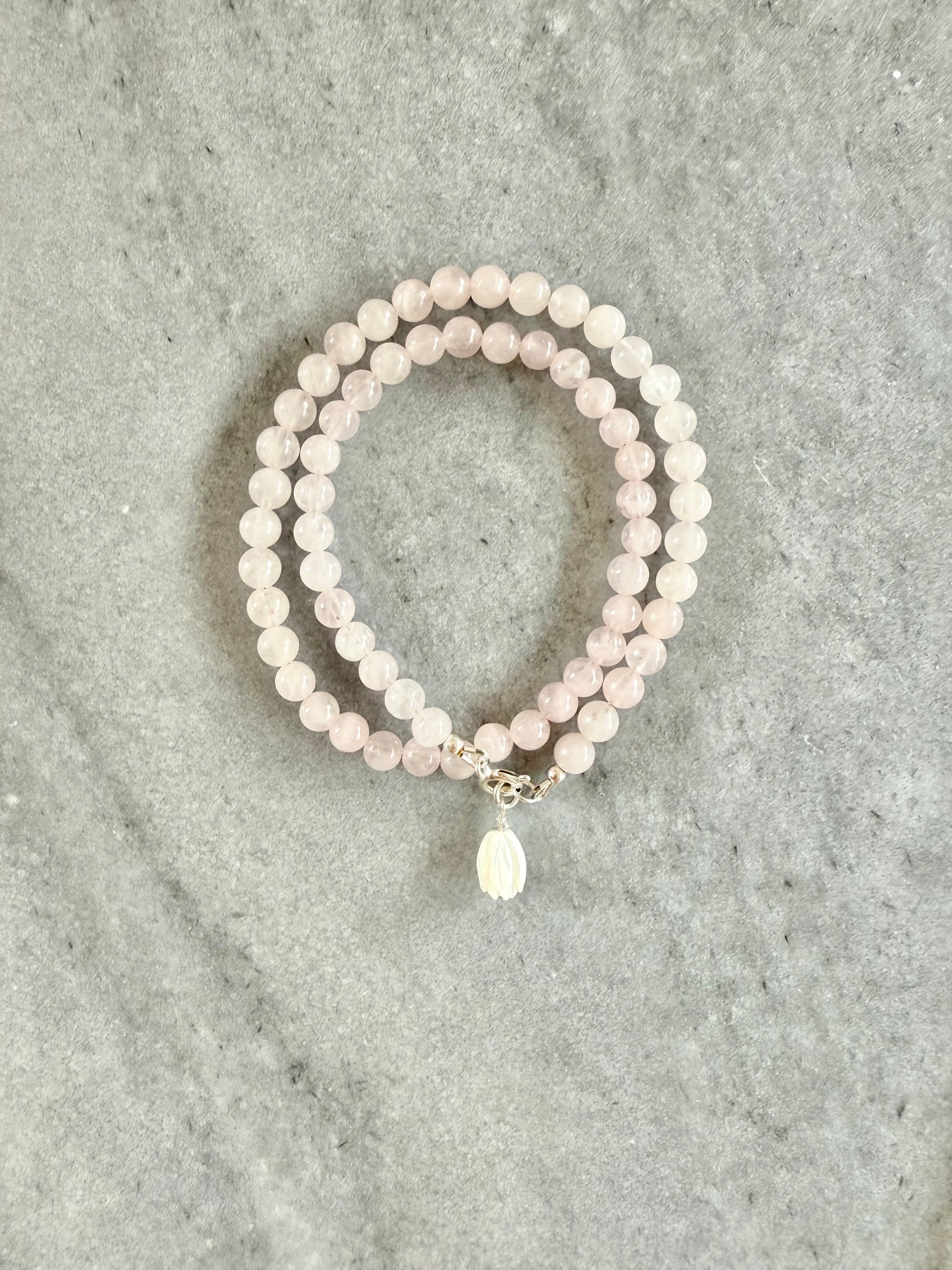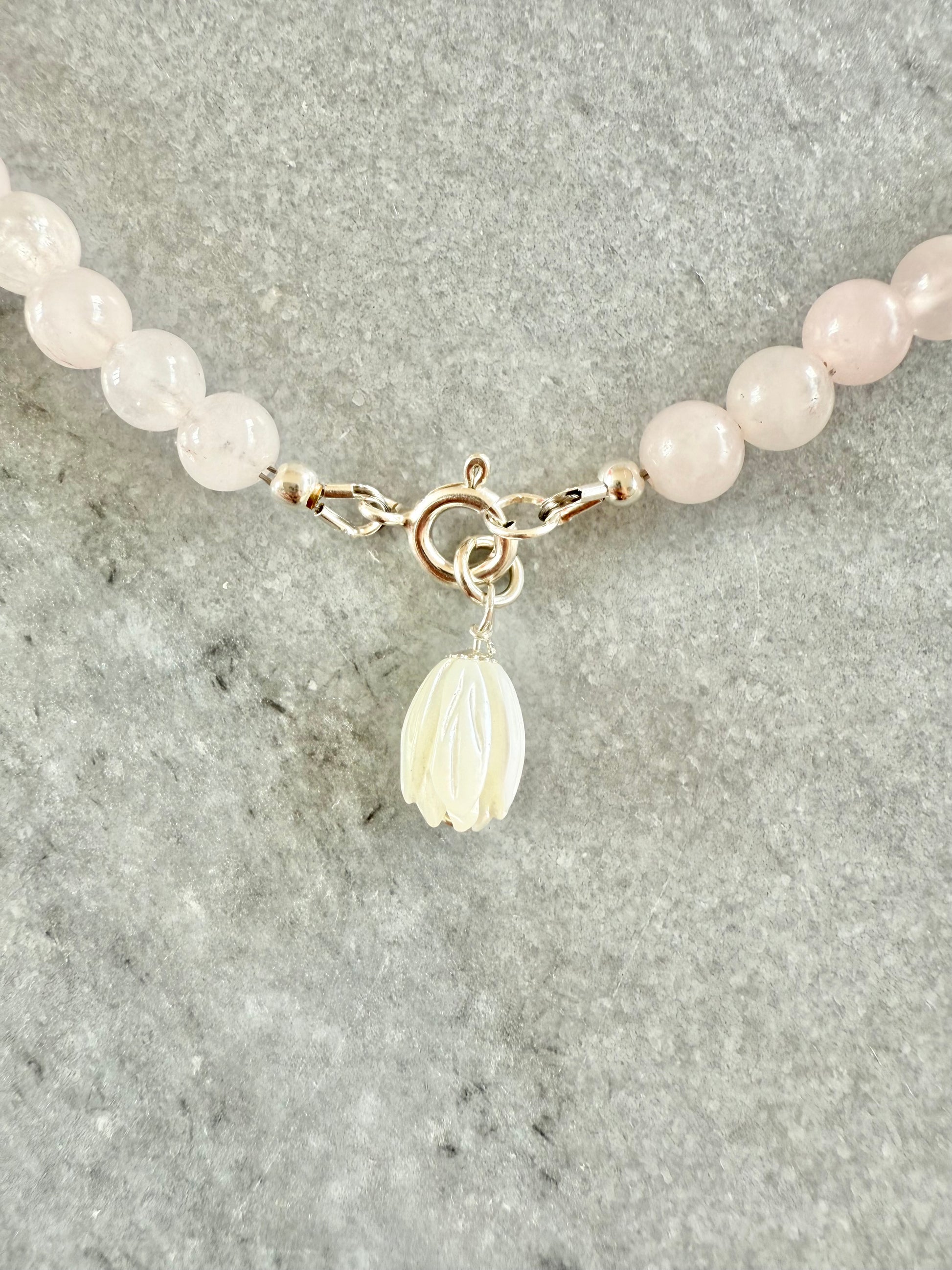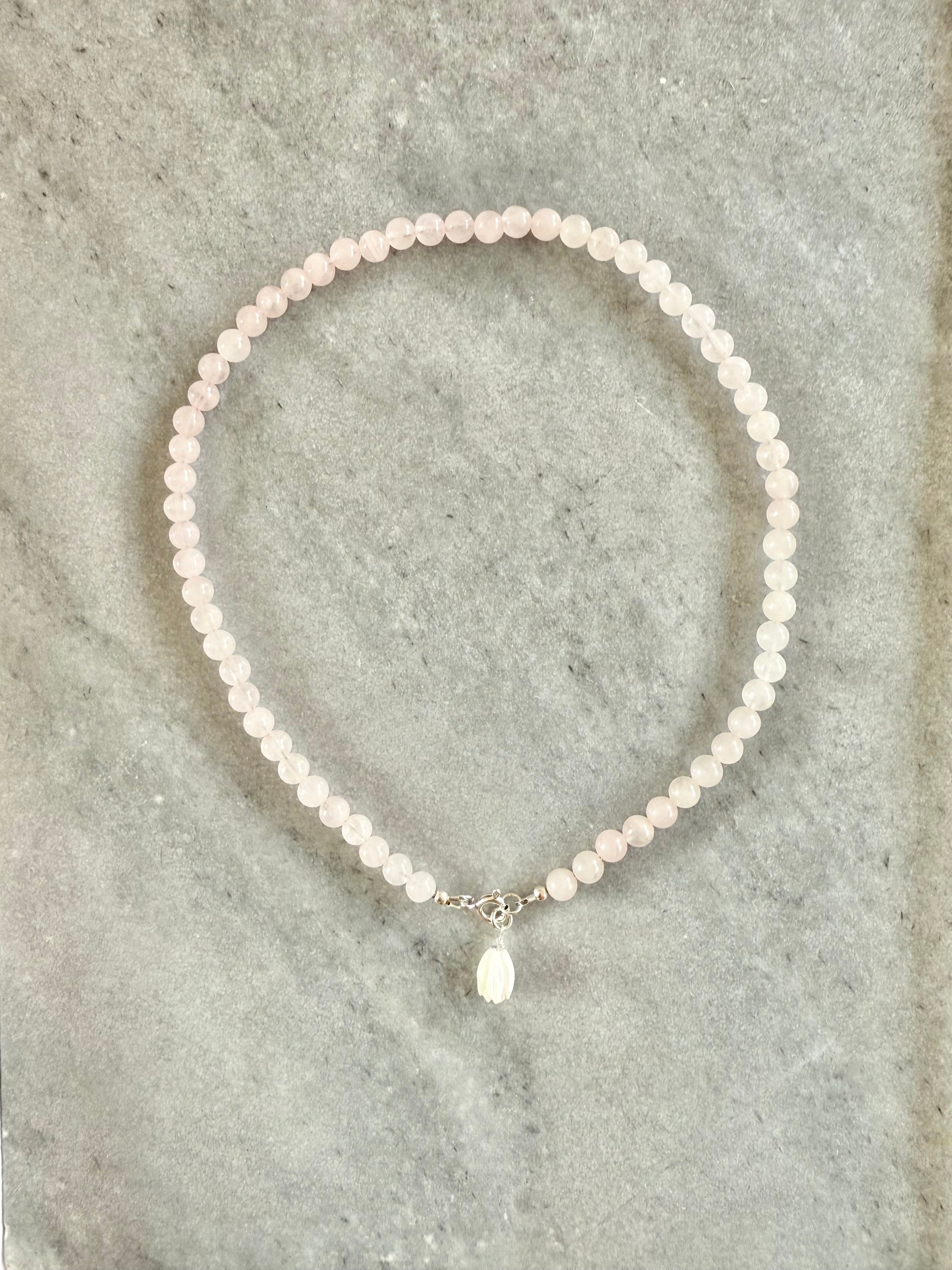 This necklace is handcrafted using Rose Quartz beads, each chosen for its unique colour and natural character.