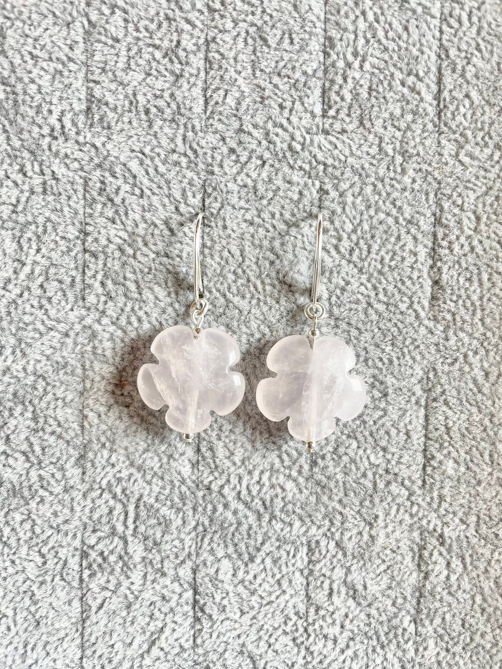Rose Quartz flower drop earrings on sterling silver leverback hooks