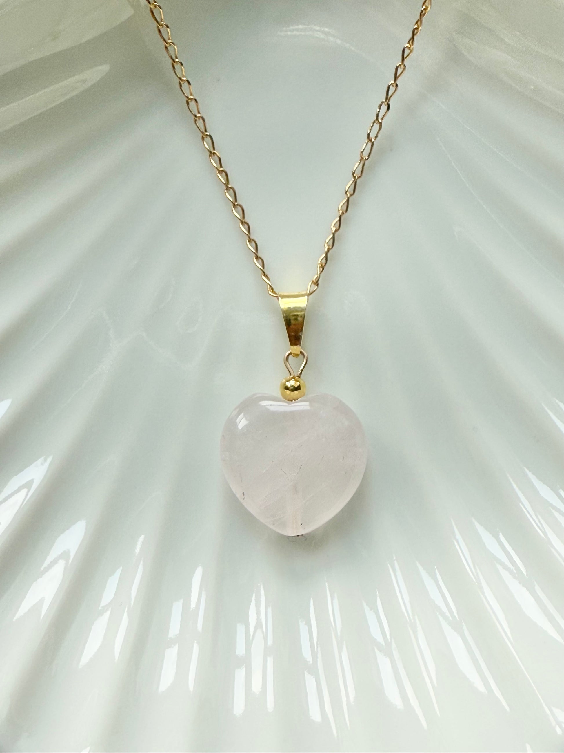 Delicate and timeless, this rose quartz heart pendant symbolises love and compassion.